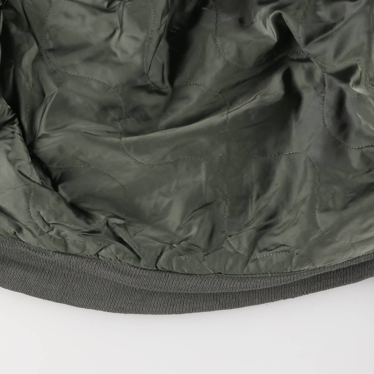 -Inner, entire rib fabric at hem deteriorated. Repair marks near right armpit.