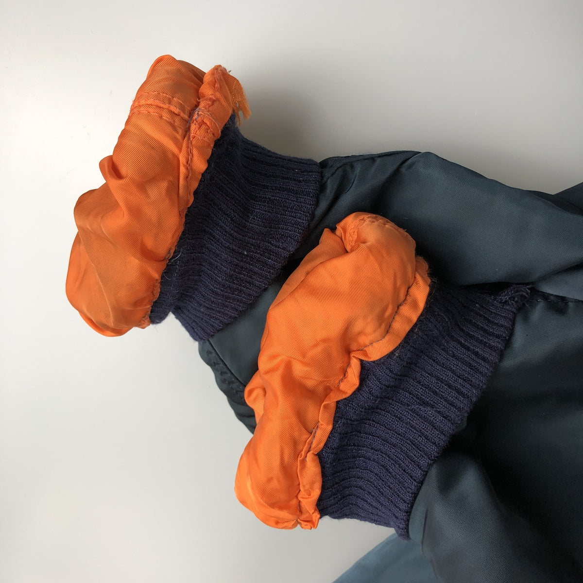 - Repair marks on front, back and both sleeve ends