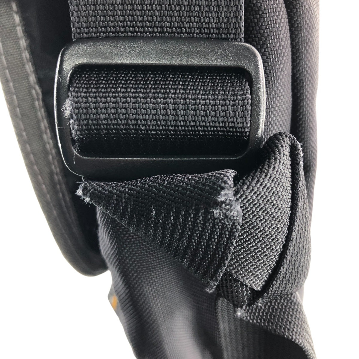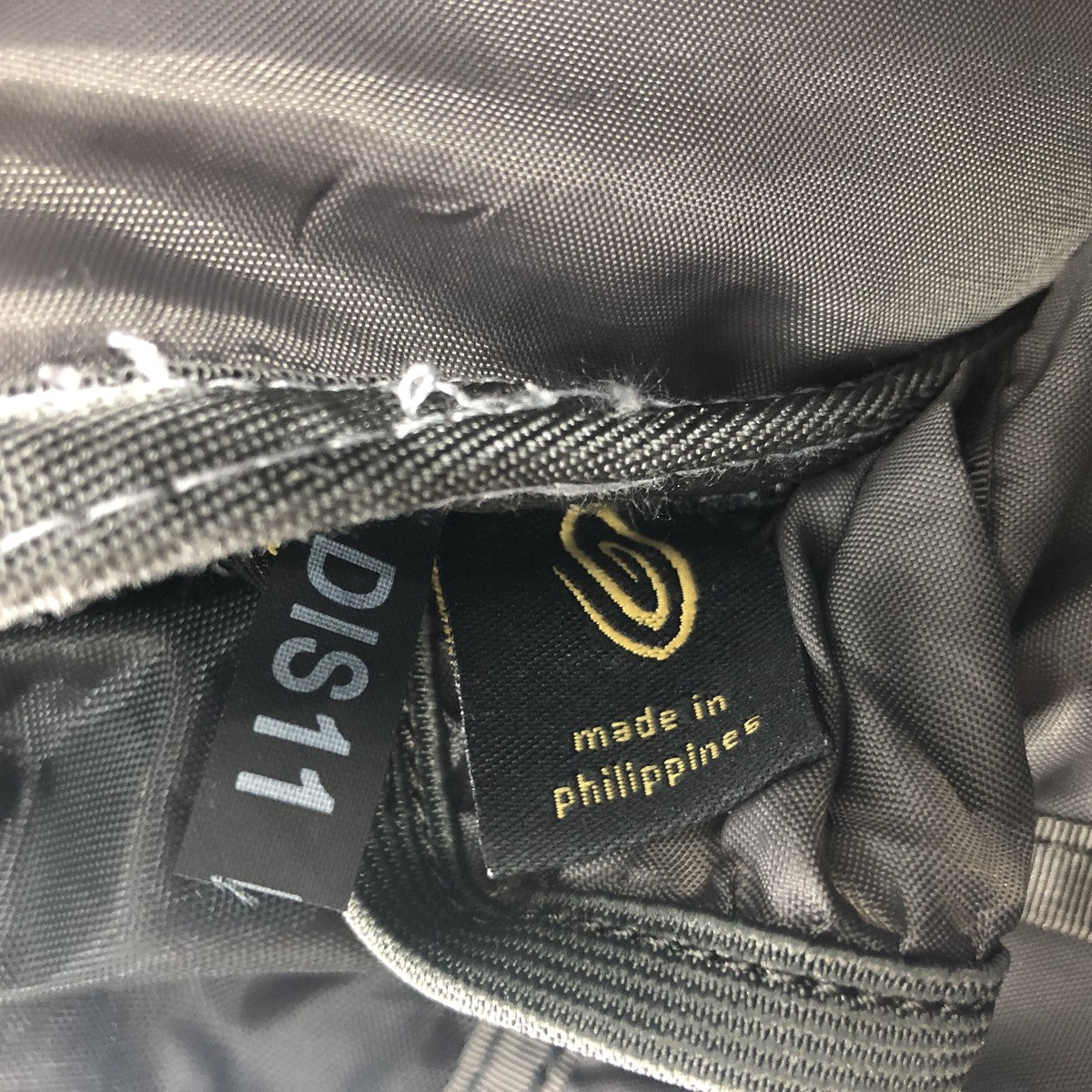 -Tears on the front and back of the cover. Frayed bottom adjustment string.