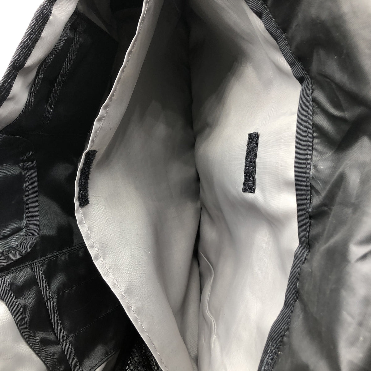 -Inner, left and right seams near the flap are stained