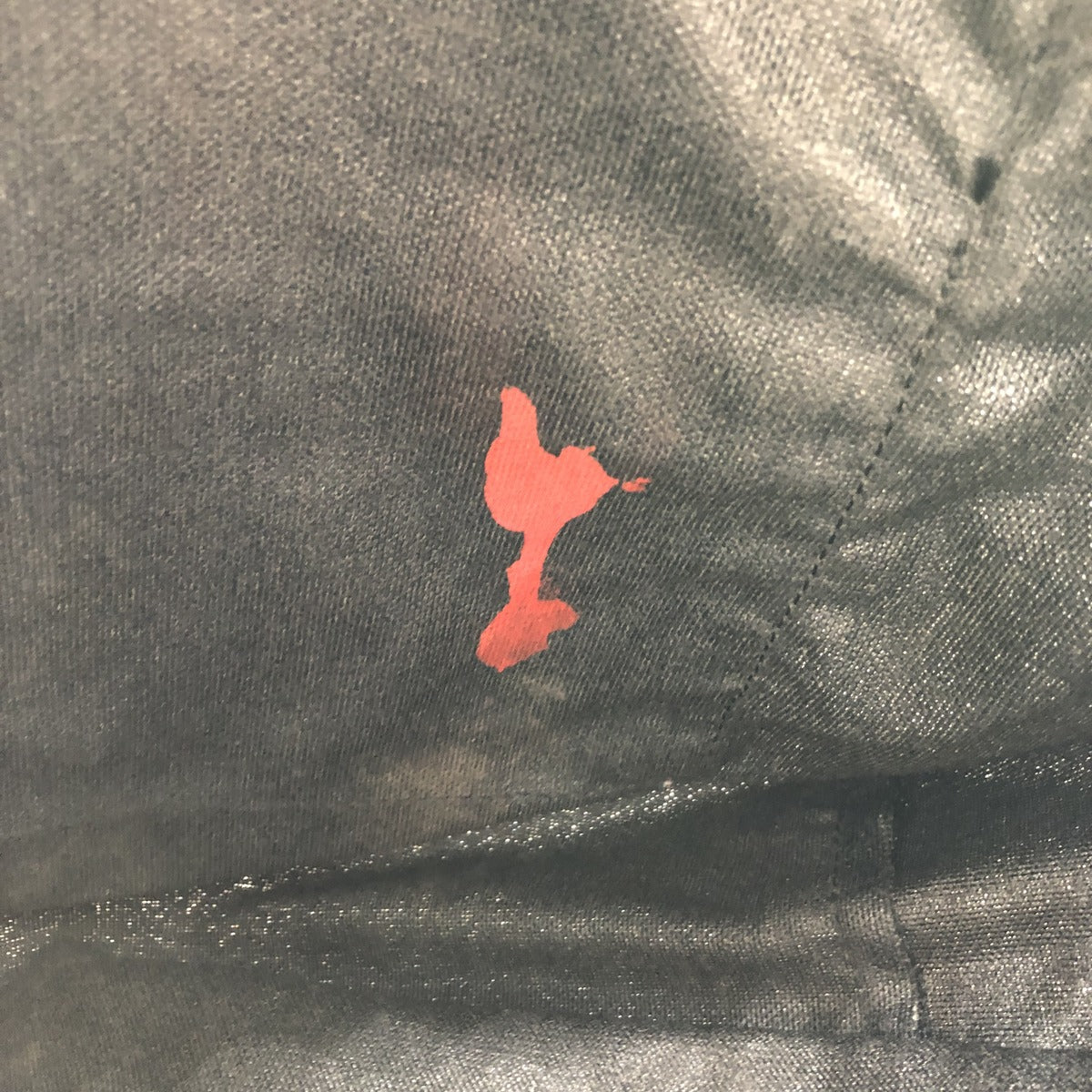 -Stain on front, near handle, right front pocket, right inside front pocket. Rubbing on main zipper and front pocket zipper.