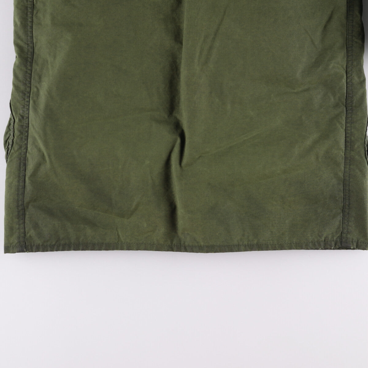 -Stain on the inside front, liner, left and right chest, left and right abdomen. Deterioration of fabric inside the left and right abdominal pockets.
