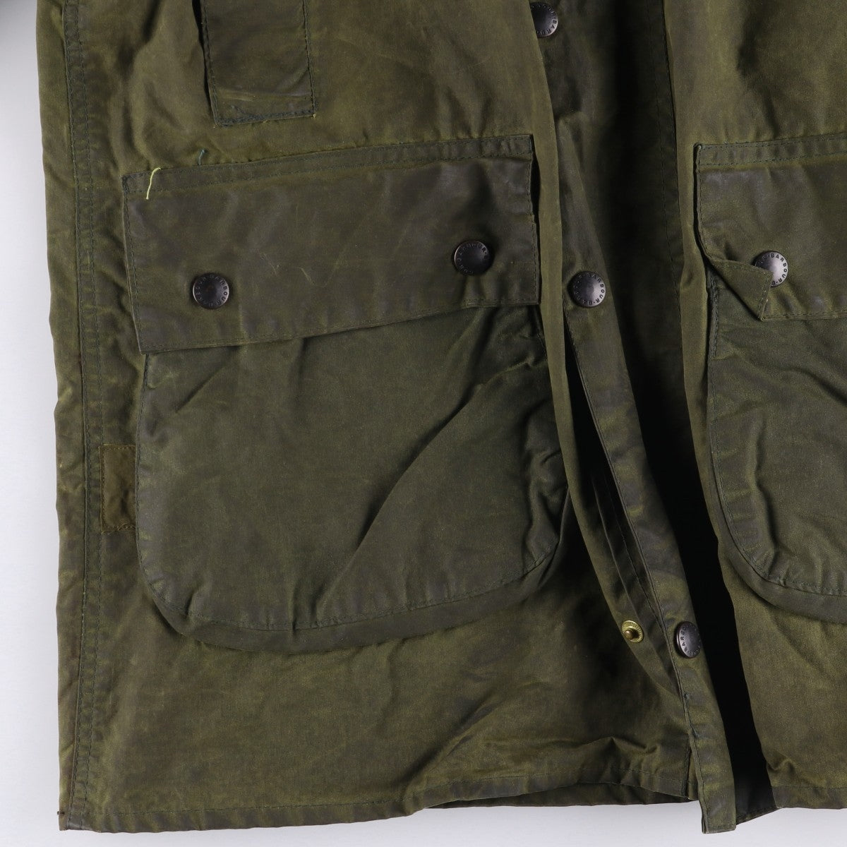 - The fabric inside the front and left and right abdominal pockets has deteriorated. The bottom button is deformed and cannot be used. There is a repair mark under the left chest placket.