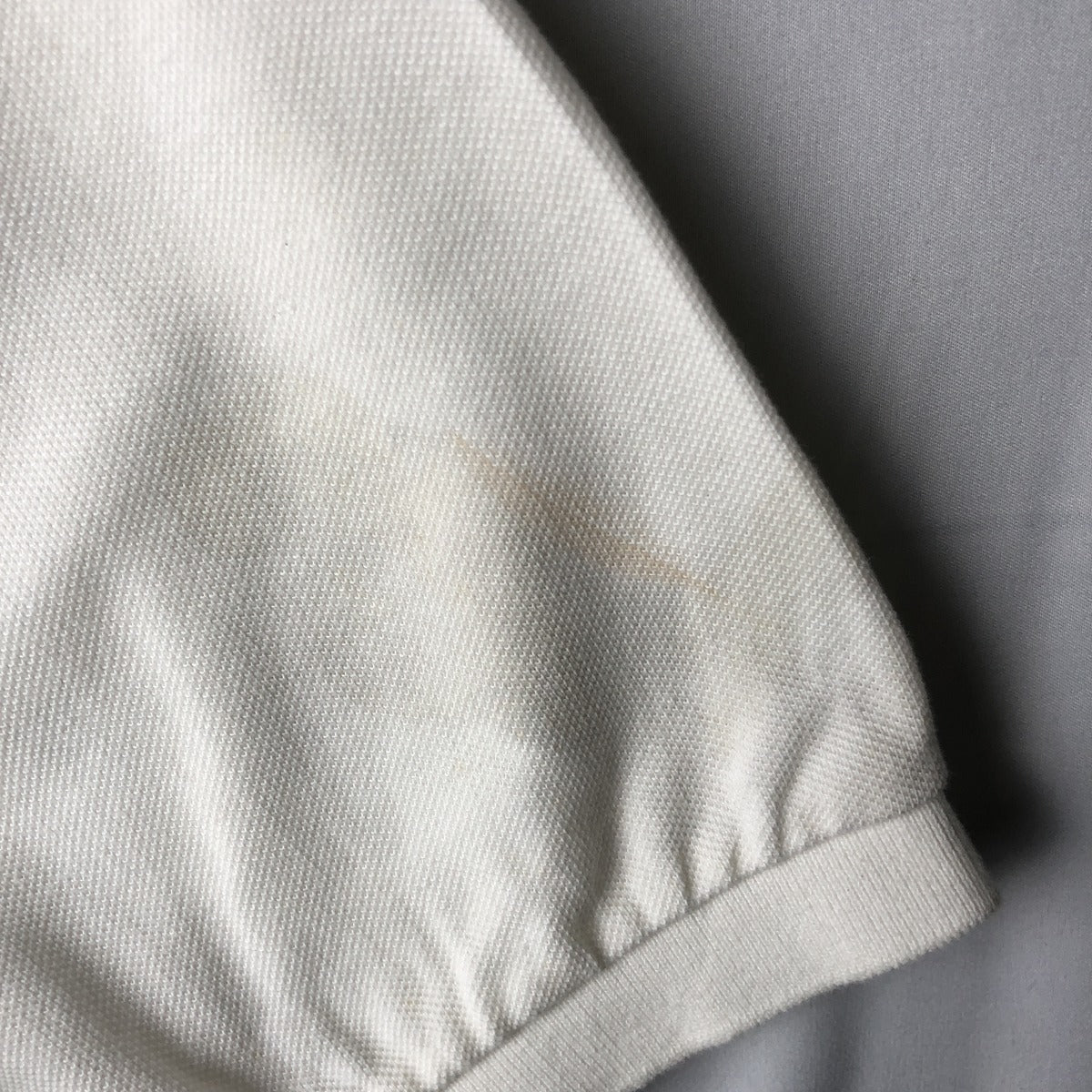 - Stain on front, left arm.