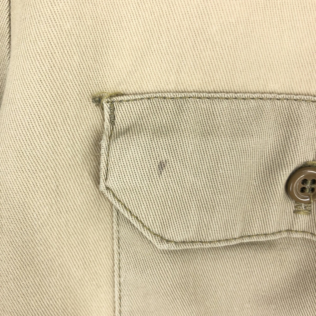 - Stain on right chest pocket flap