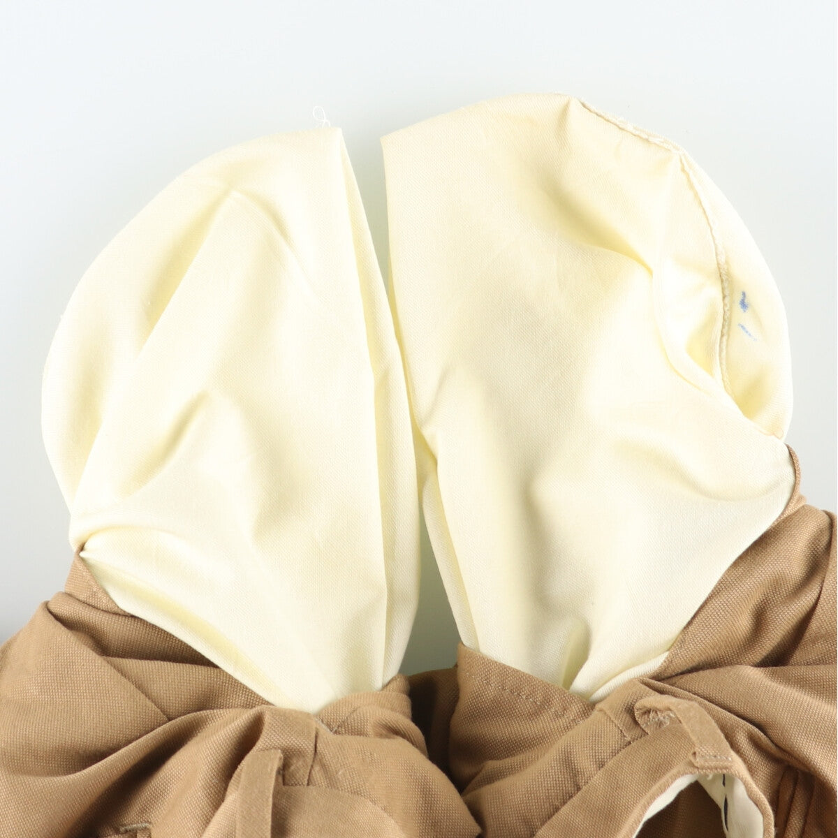 - Stain on front and right hem, Fray on both hems