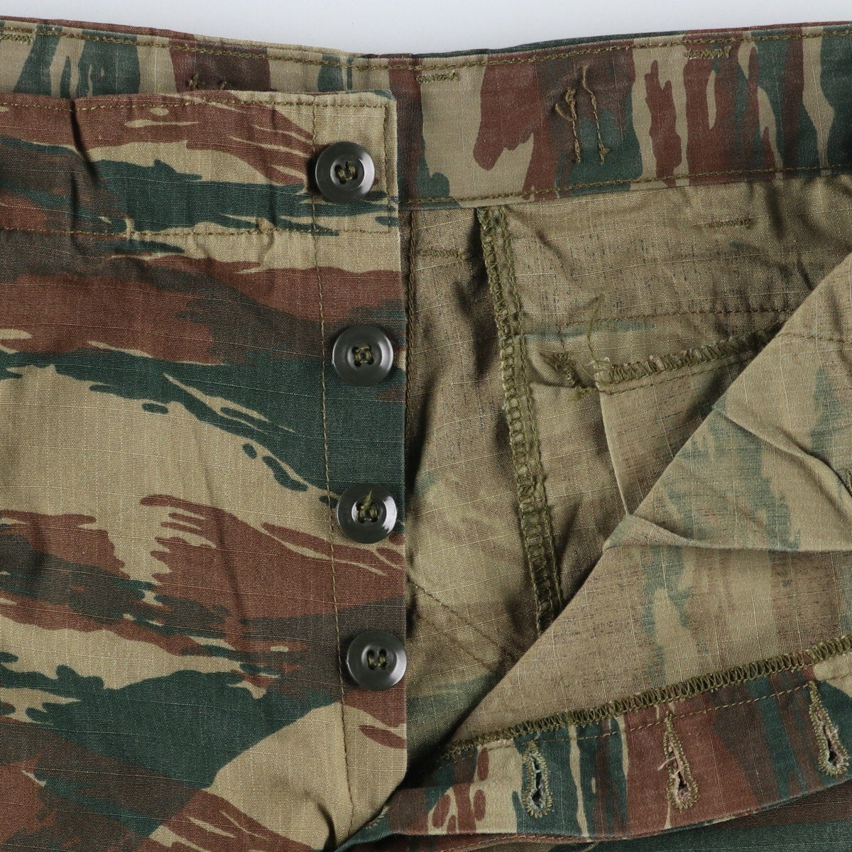 | Characteristics | Button fly / Greek Army / Adjustable hem / Lizard Camo / Ripstop |