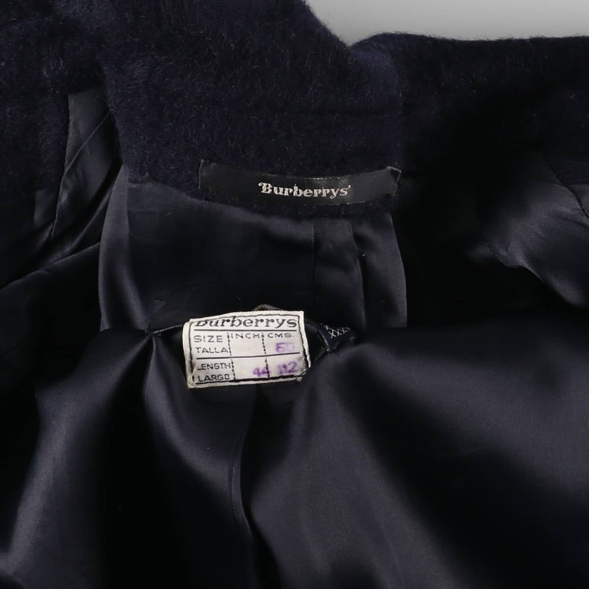 Burberry's Balmacaan coat, men's size L wool navy blue type Vintage Second Hand