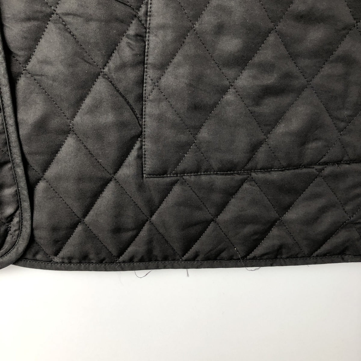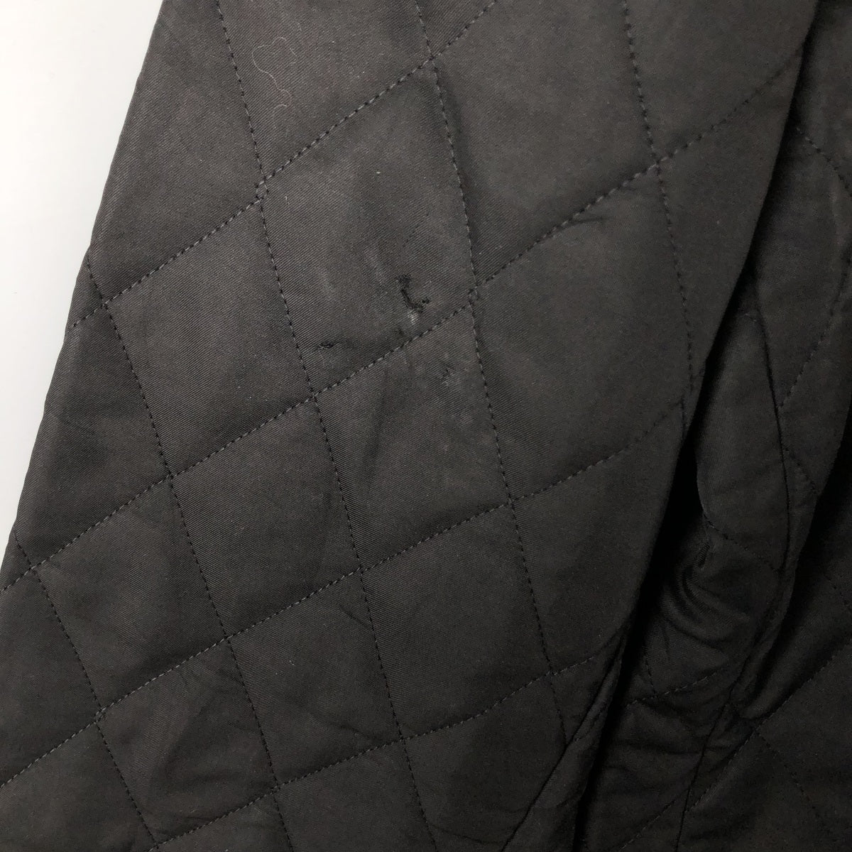 -Stain on the back of the collar. Missing threads at the hem.