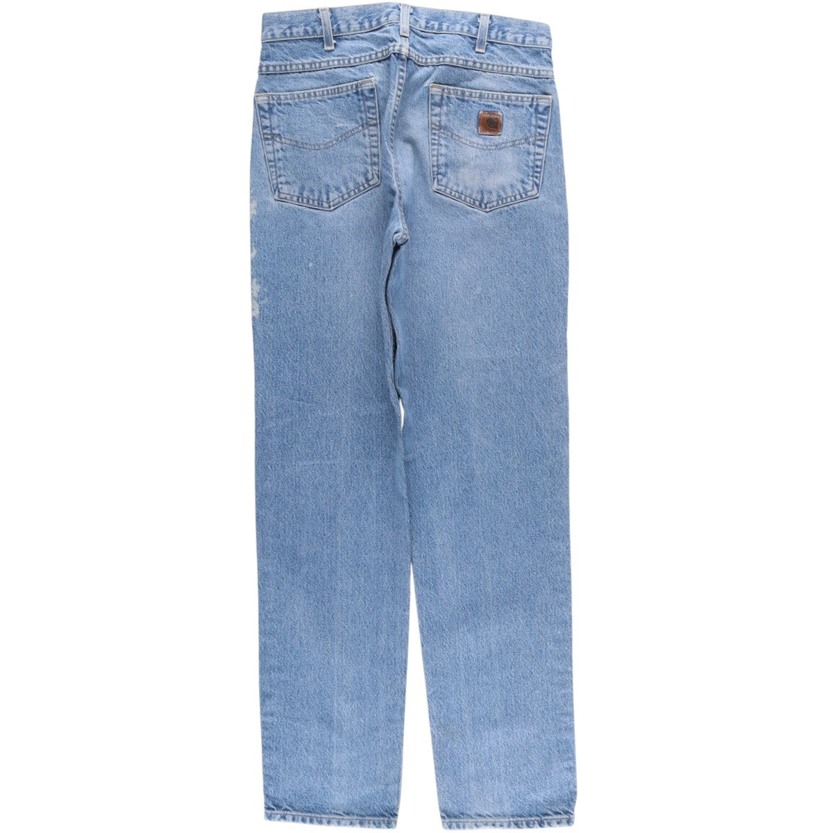 -Stain on the back, hip and left thigh. Repair marks on the left pocket (with patch inside). Right hip patch peeled off.