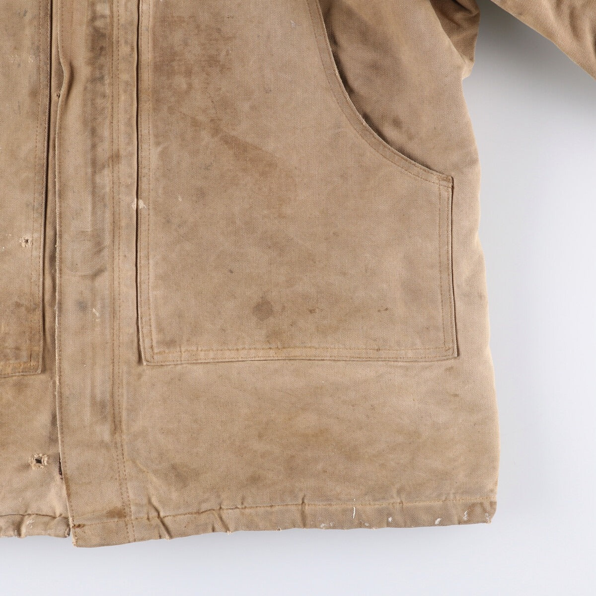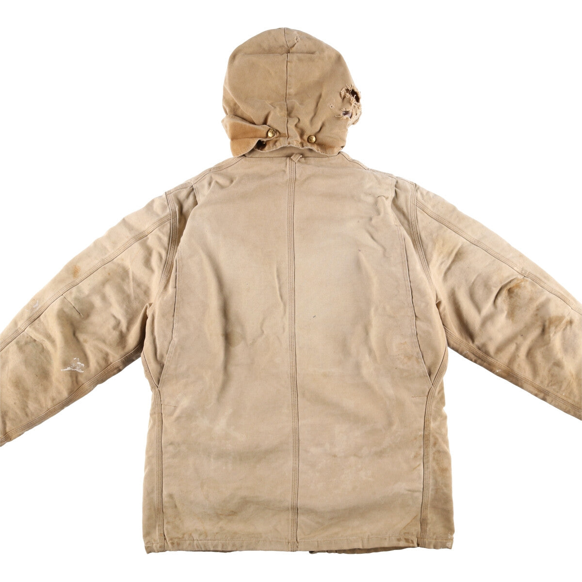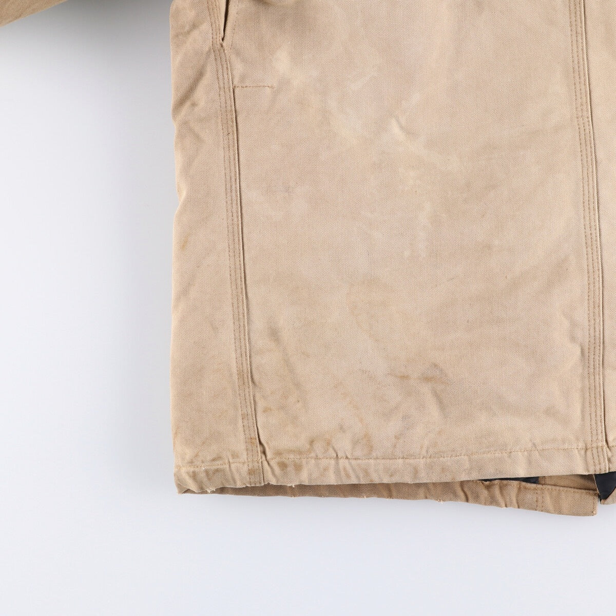 - Back, left and right sleeves and left hem are worn and worn.