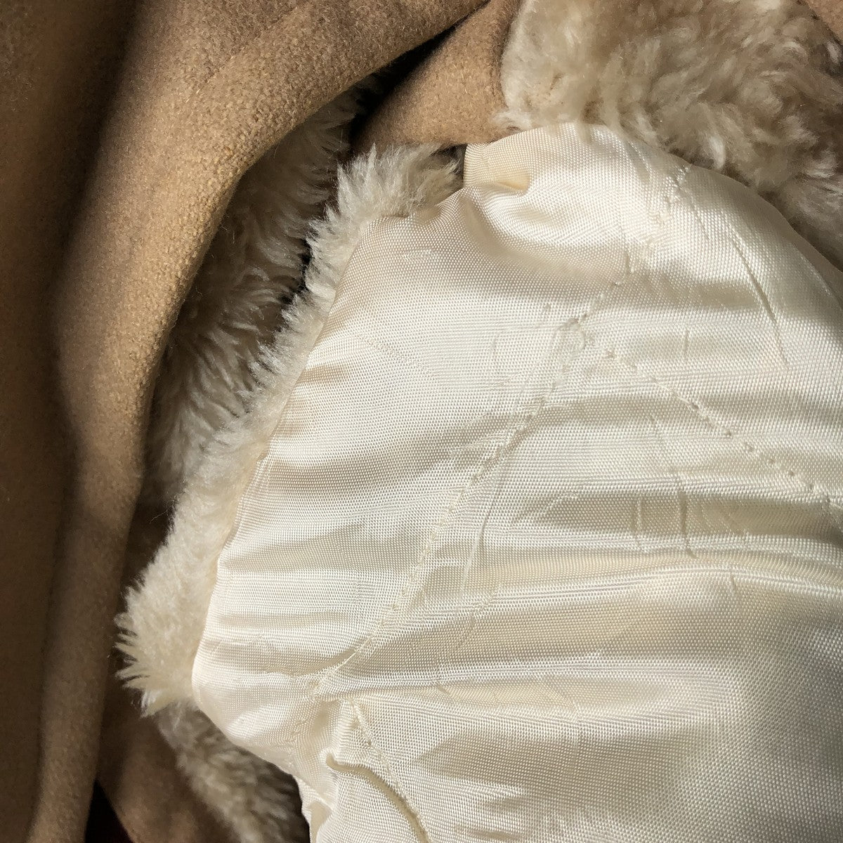 - Stain on the inside front, liner, right neck, right chest, lower left, and left hem