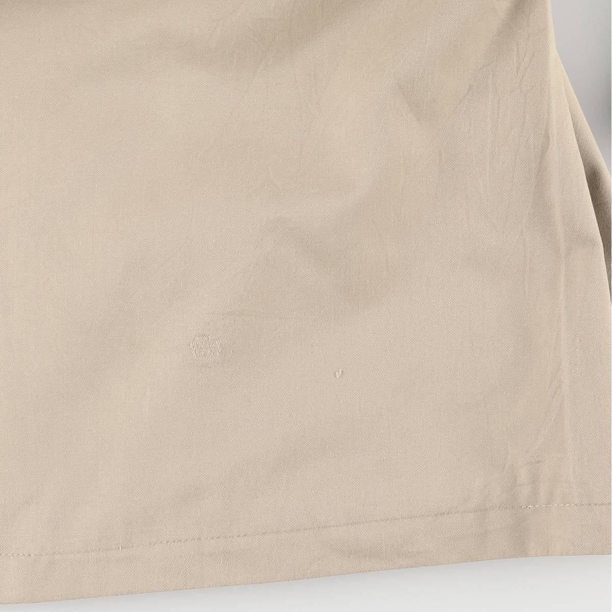 -Stain on front, right abdomen and center abdomen placket. Fray near collar. Scratches and repair marks on left hem.