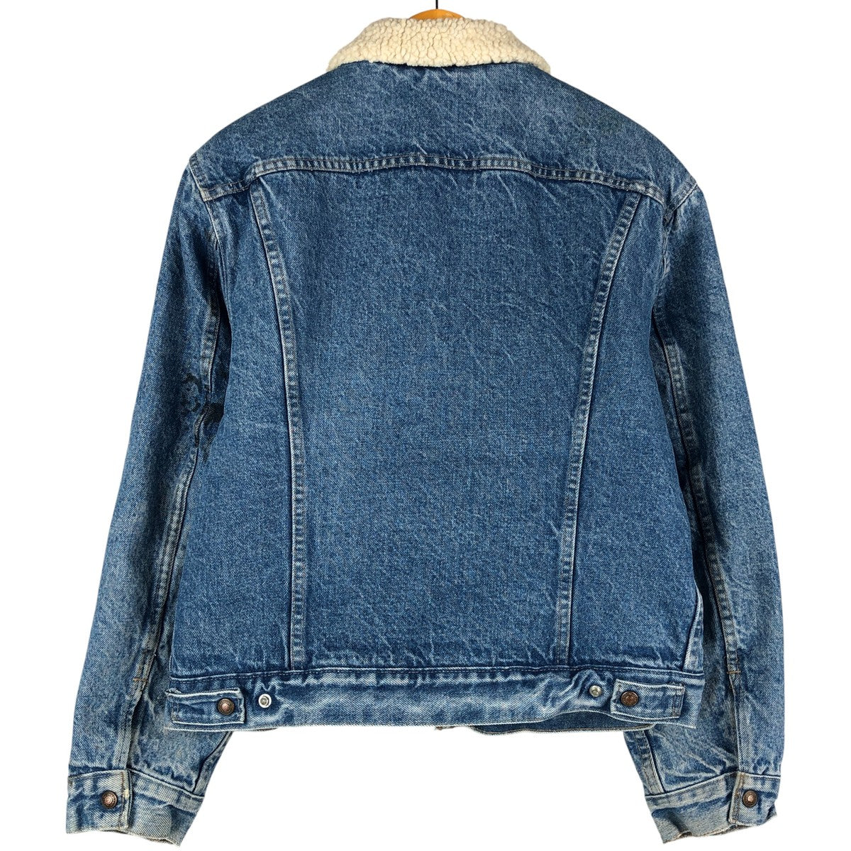 -Stain on the back, right shoulder, both arms, and both sleeve ends (inside). Deformed snap button (protruding part) at the right hem. Scratches on both sleeve ends.