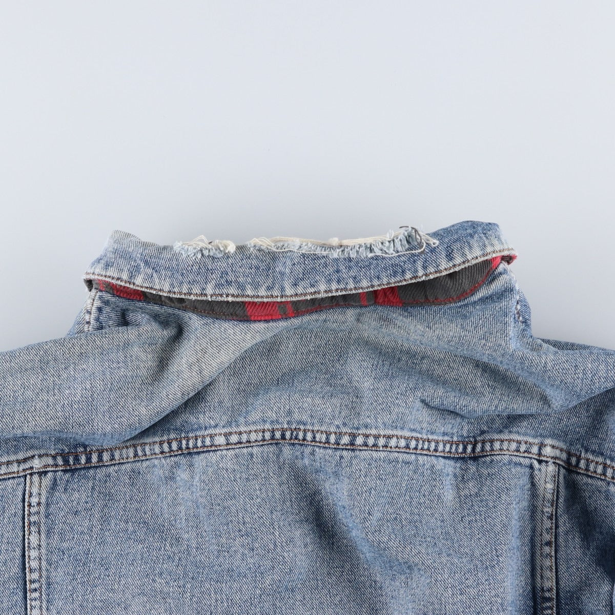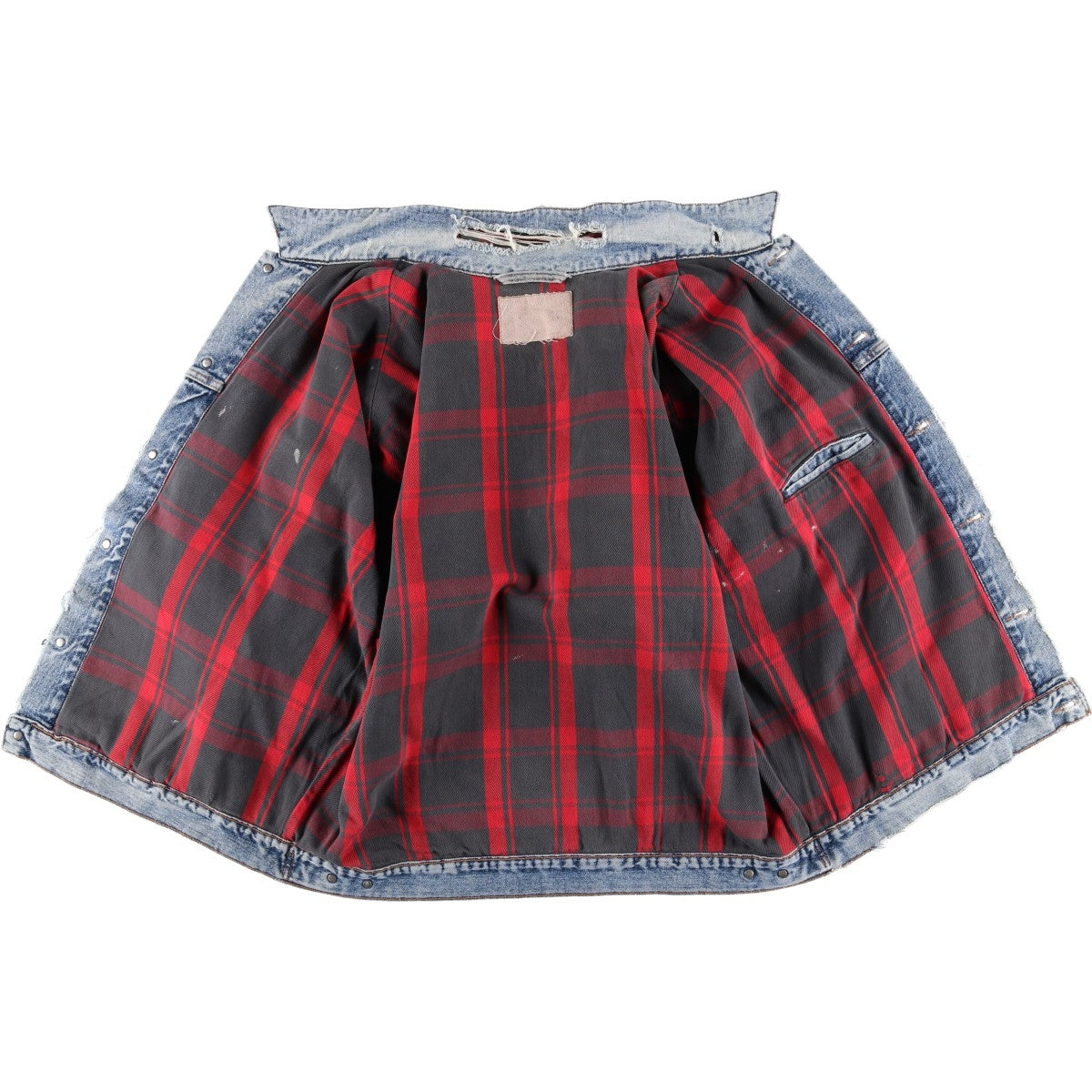 -Tears and scuffs on the inside back and inside collar