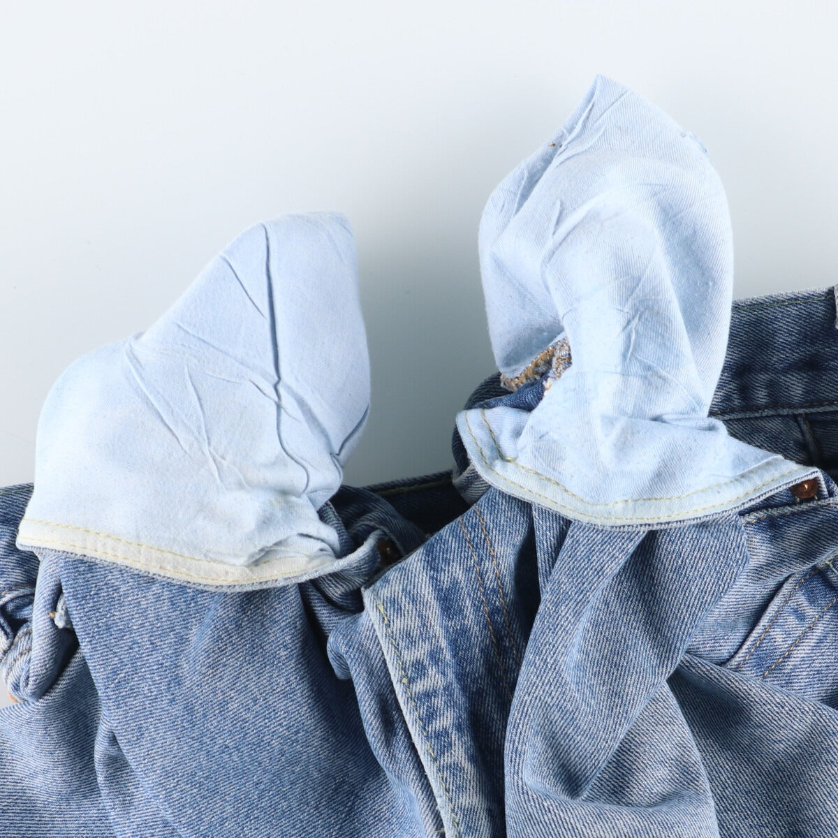 - Stain on the right thigh, rubbing on the right hem