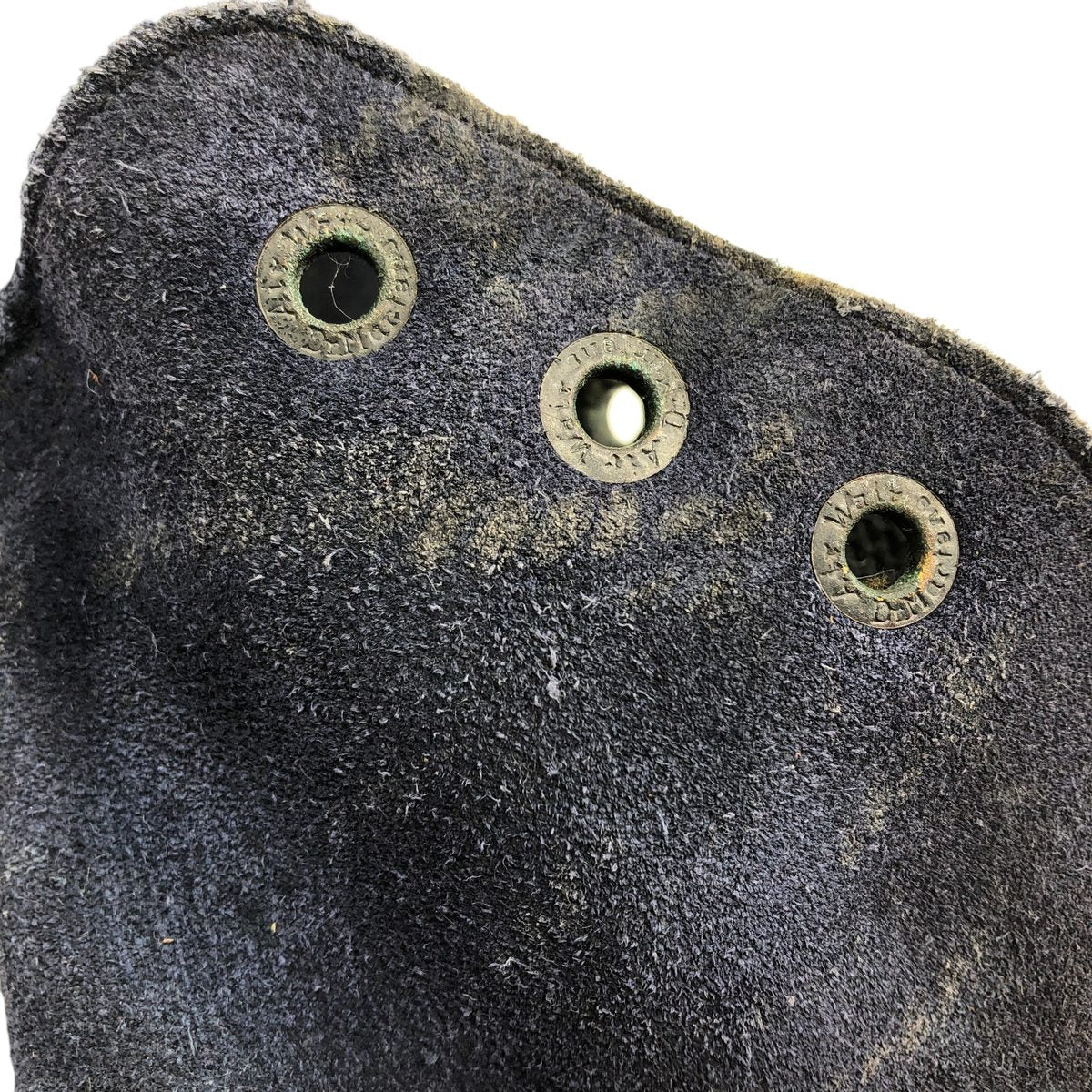 - Left outer side, outsole is scuffed and inside the shoe hole is rusted
