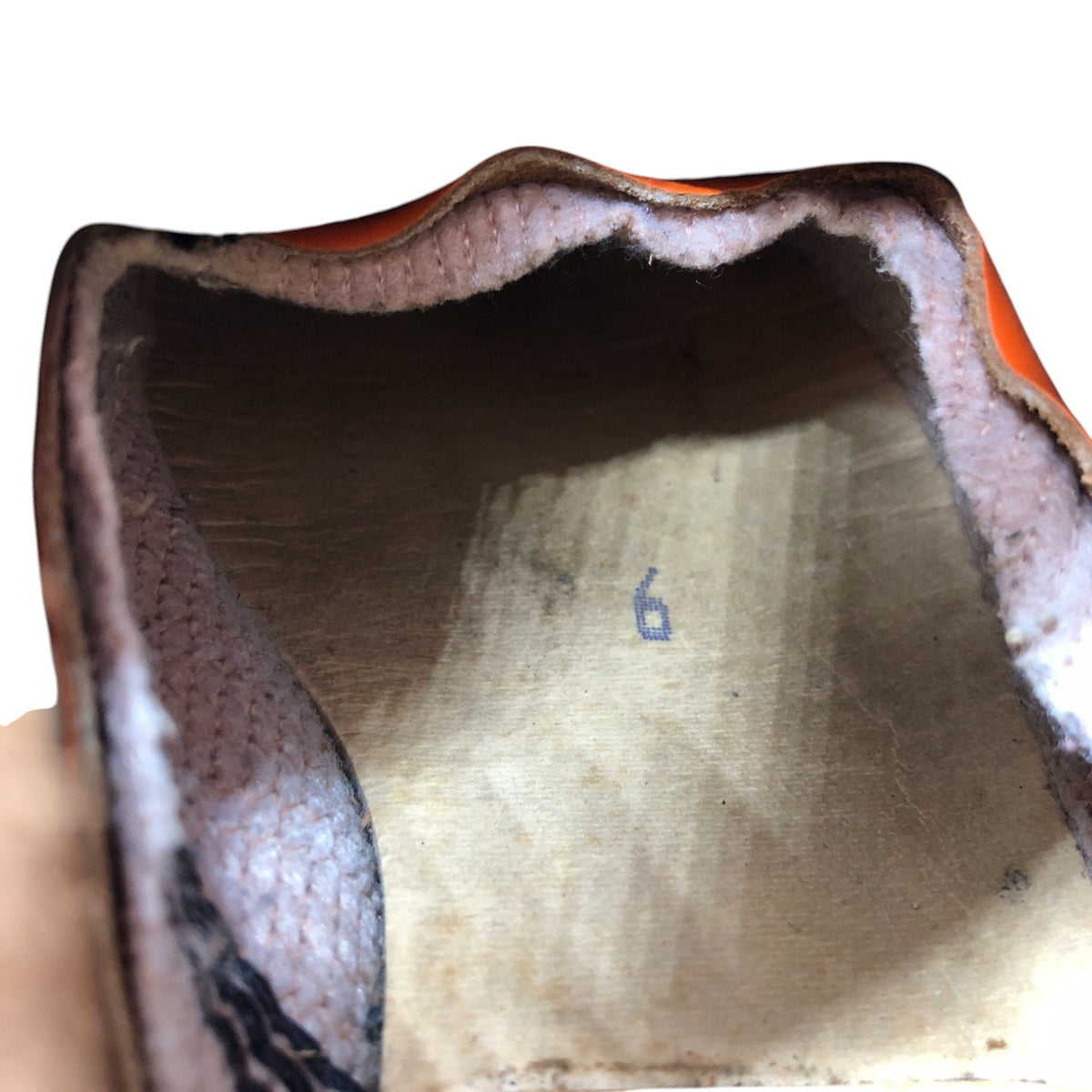 -Stain on the right inner part, toe. Scratches on the upper. Wrinkles on the heel counter.