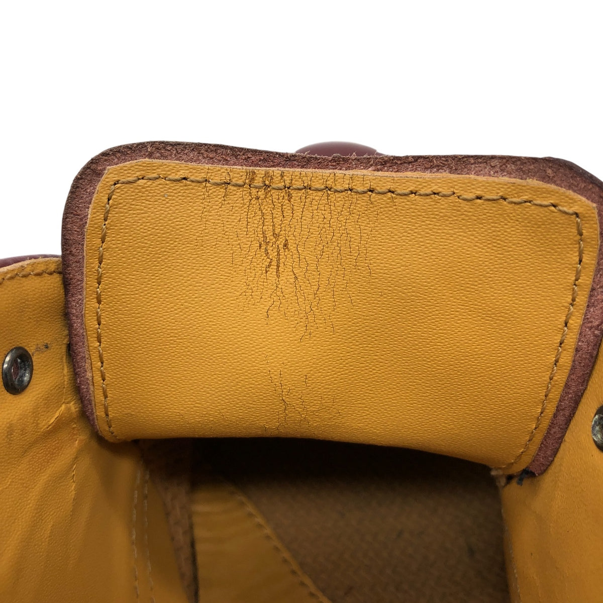 - Stain on the inside of the heel opening on both feet. Wear on the heel.