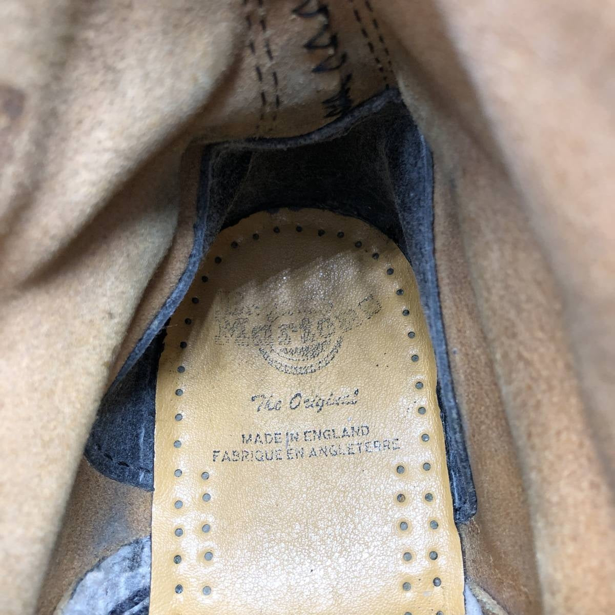 - Left foot, scratches on toe and heel counter, scratches inside eyelets