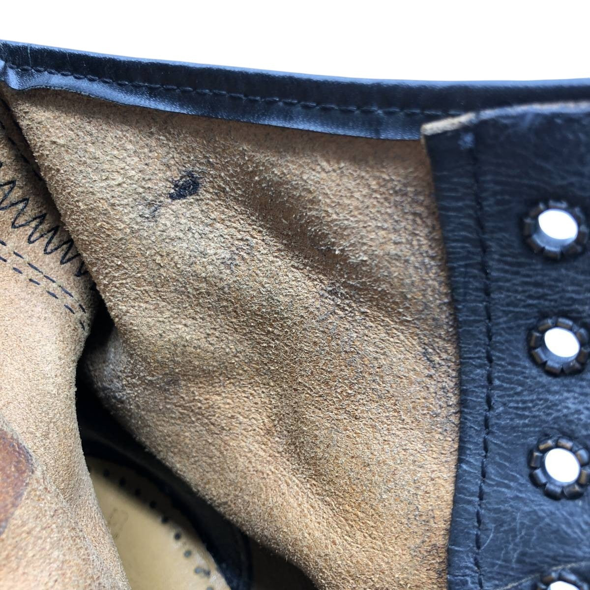 -Scuffing on the right inner side near the eyelet. Stain on the heel counter.