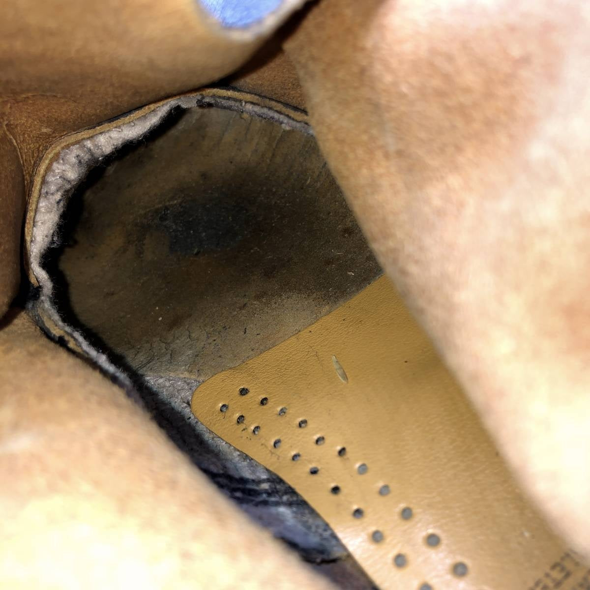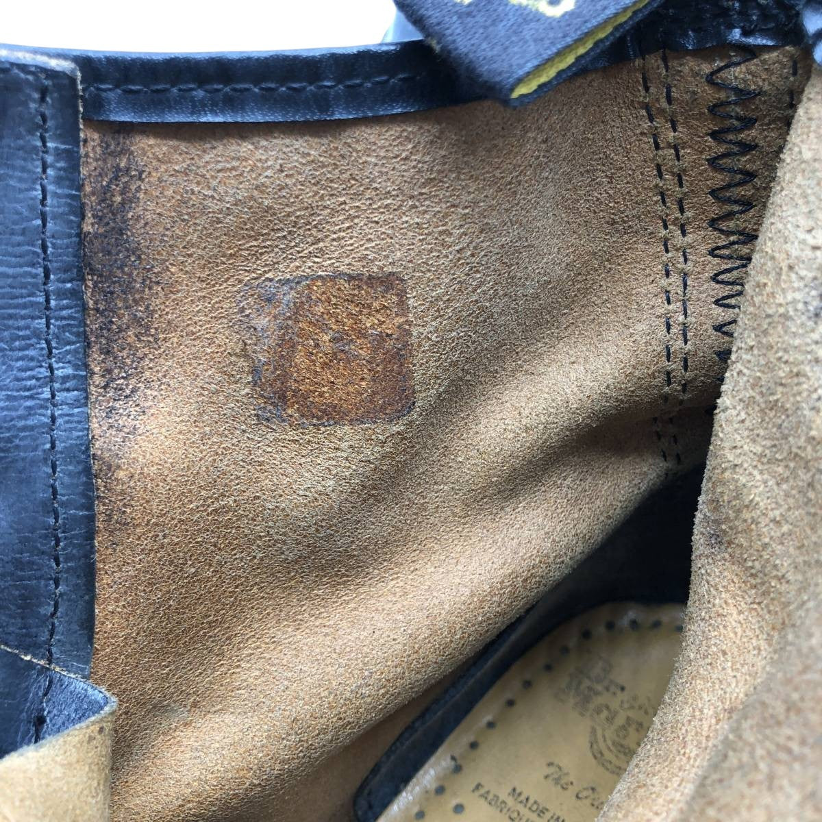 - Stain in the tan insole heel counter on both feet. Wrinkles on the tan heel counter insole.