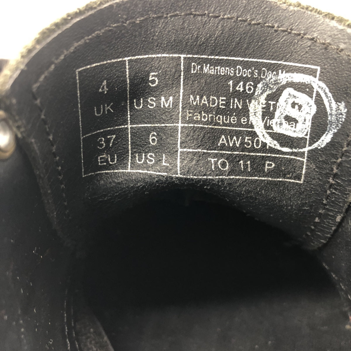 - Stain and abrasion on the left inner heel counter. Scratches on the heel counter.