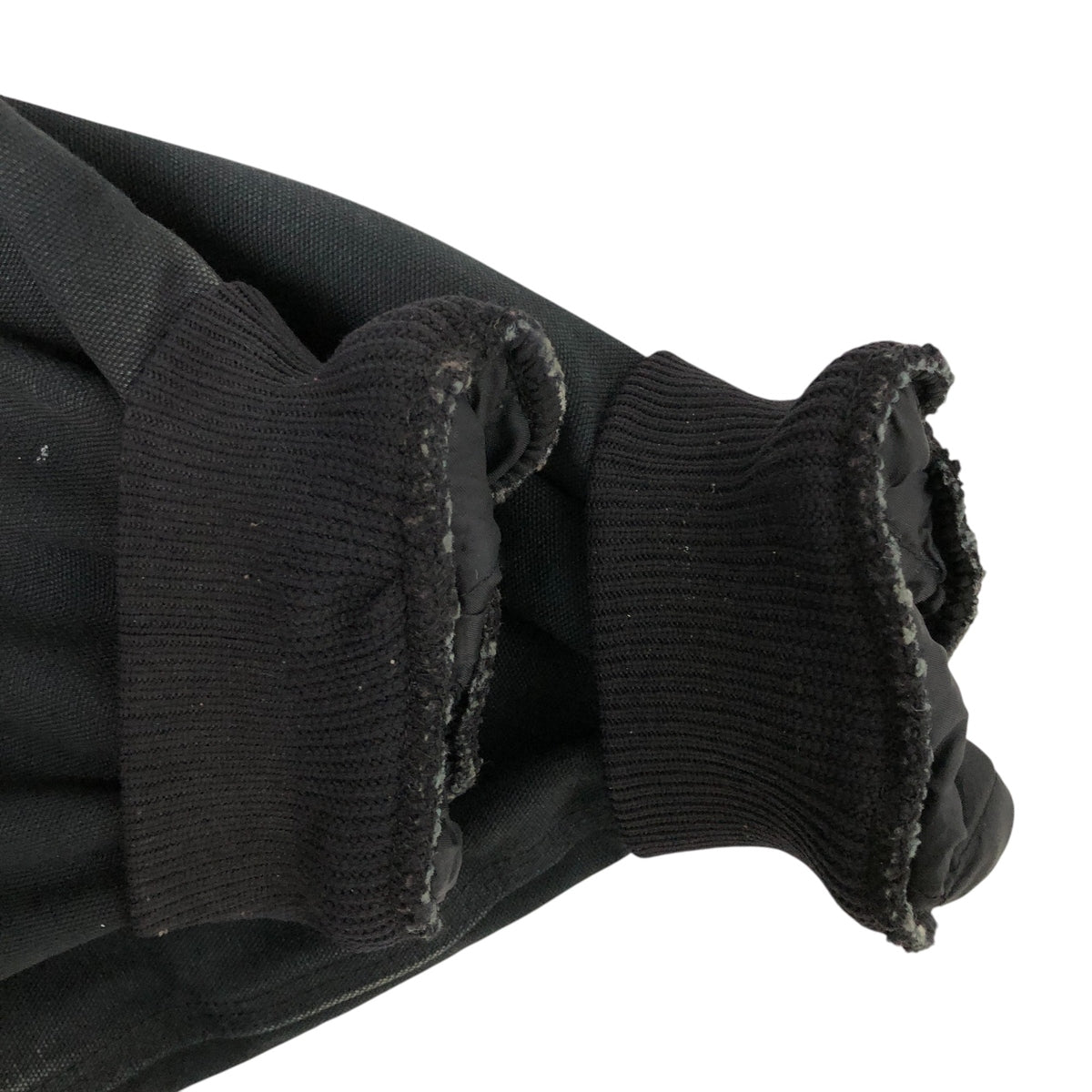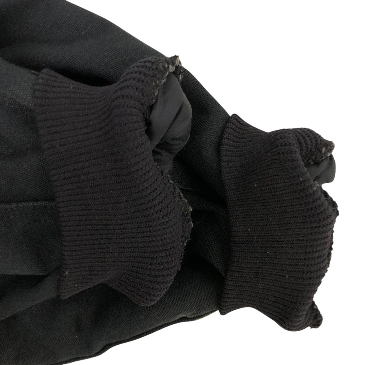 -Stain on the front, hood, abdomen, hem, left arm, left and right sleeve ends, and zipper line