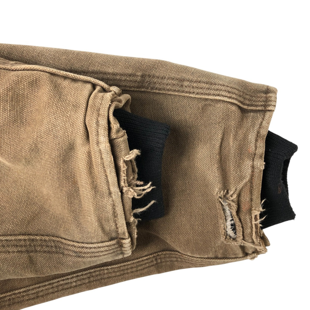 -Rear, left and right sleeve ends torn