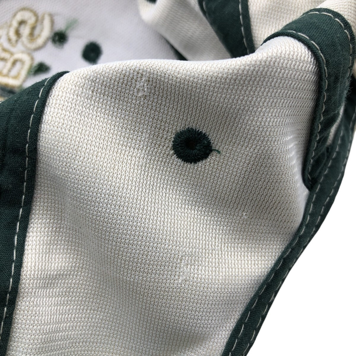 -Fray on left side crown (inner) and rear crown (inner)