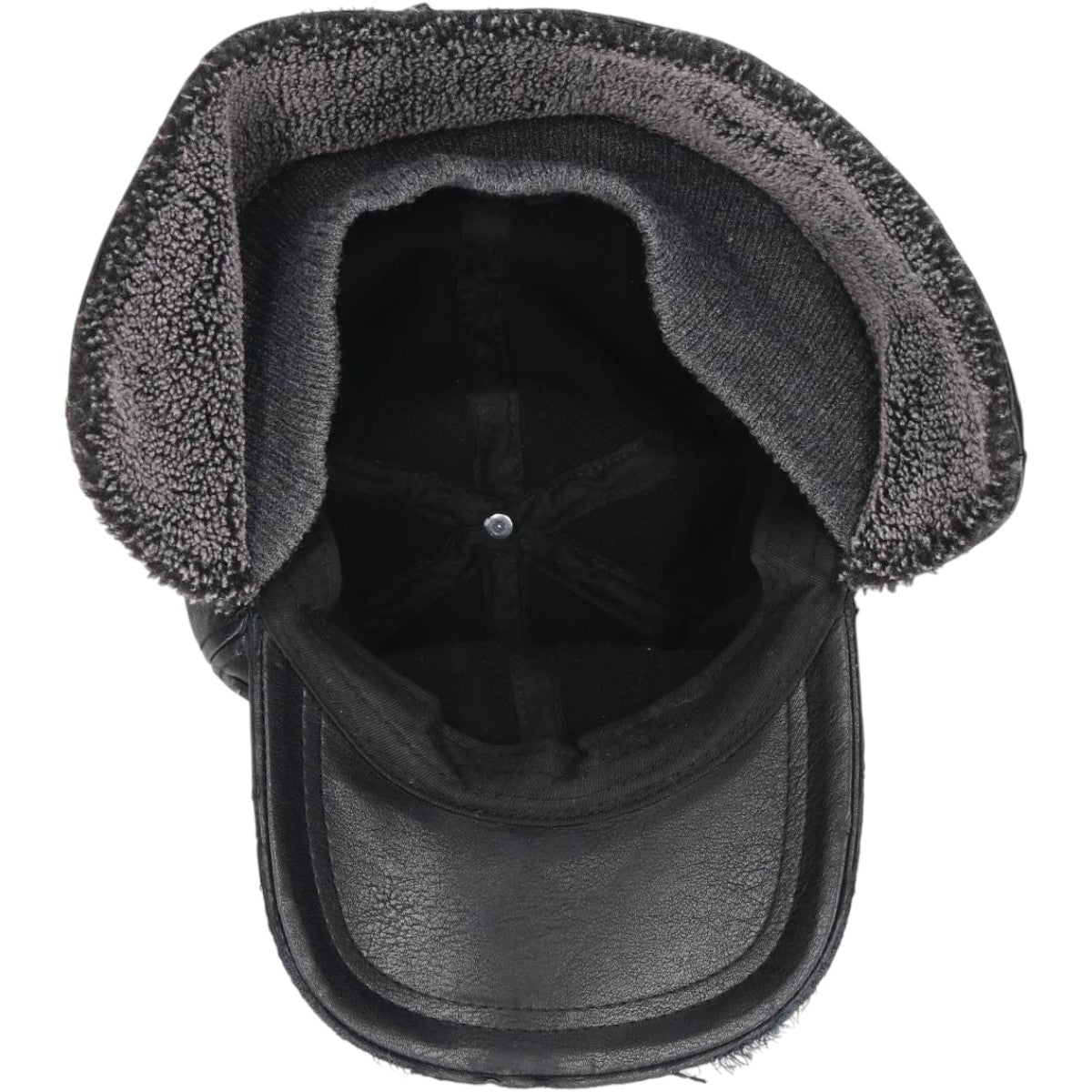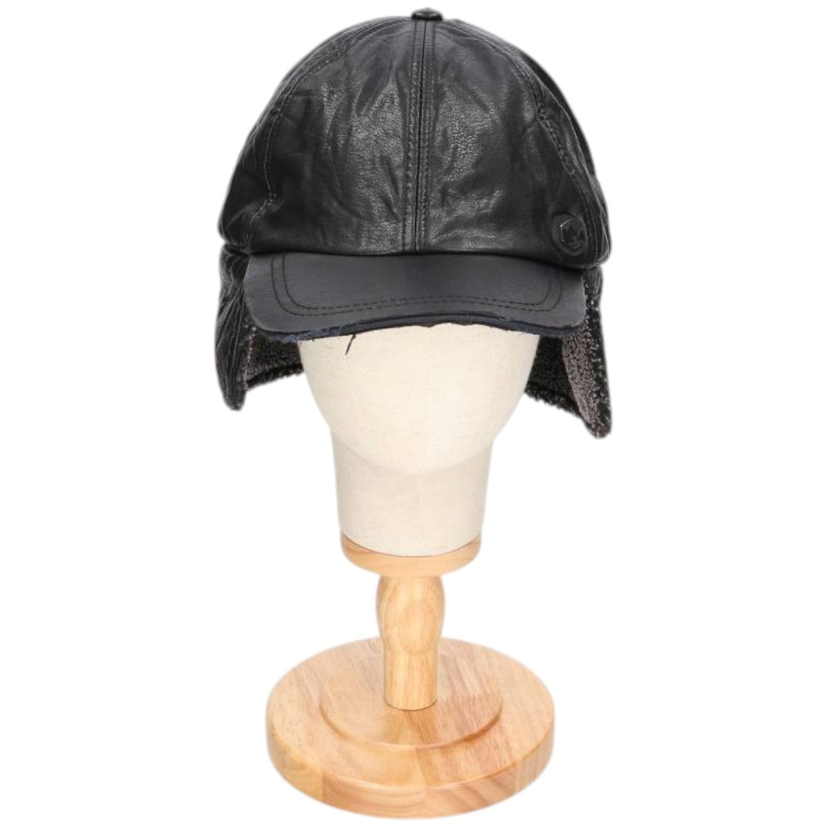 Earflap faux leather cap, one size fits most unclear black type Vintage Second Hand