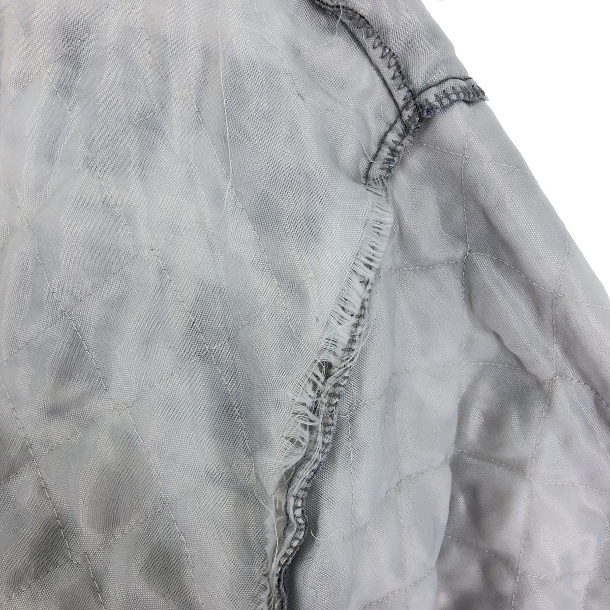 - Inside, overall thread pulls, stain on left sleeve end, right back, right hem, collar, peel on both armholes