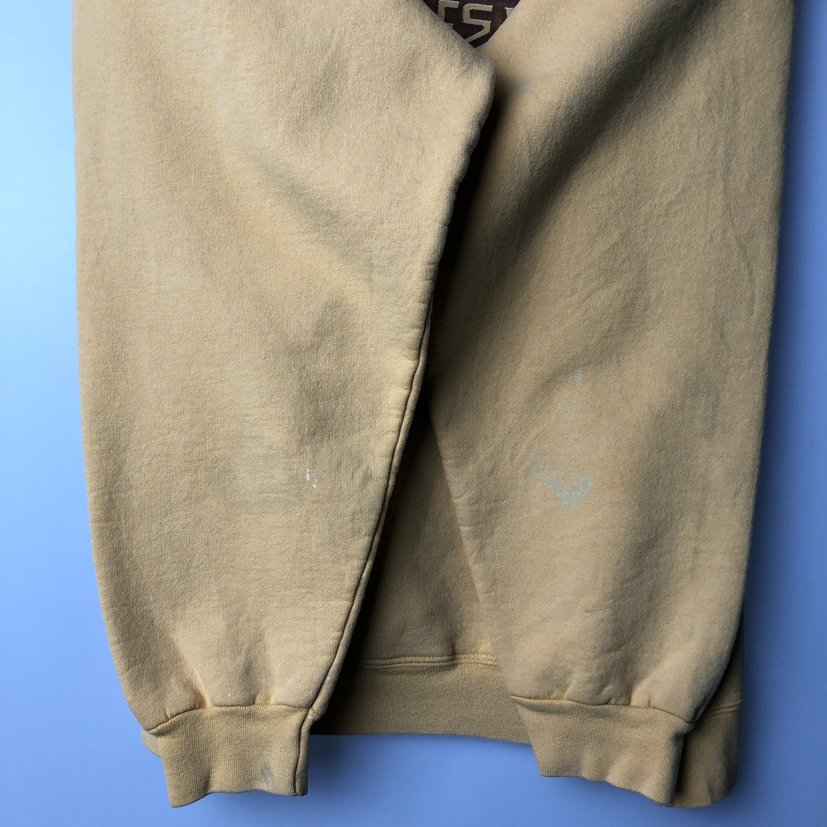 -Stain on the front, hood, chest, abdomen, above the pockets, both sleeves, and both sleeve ends