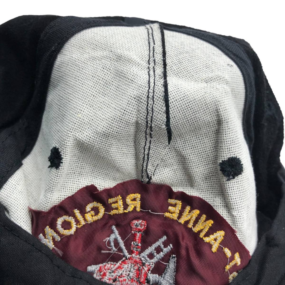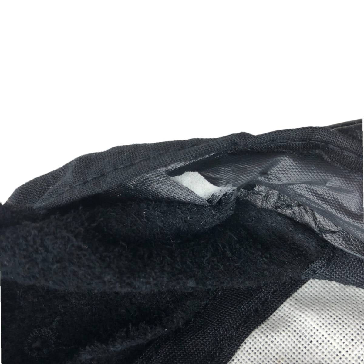 -Rip on the inner right side of the head, inside the sweatband