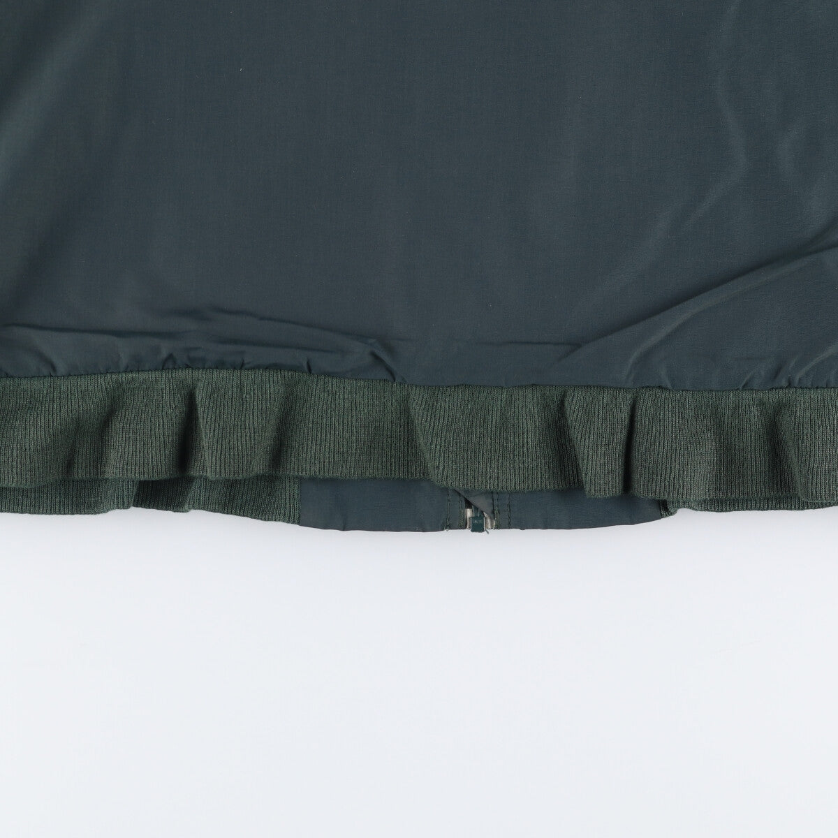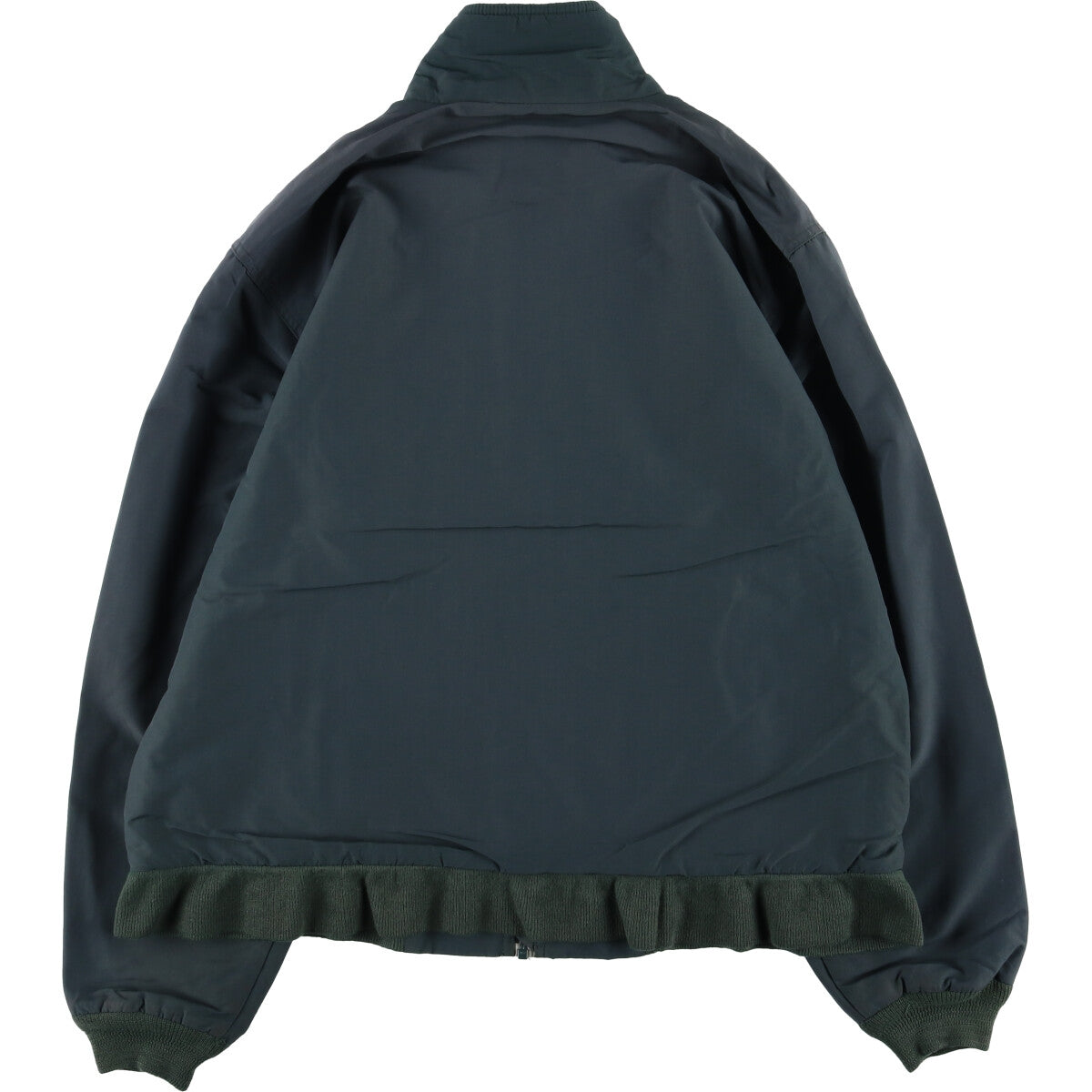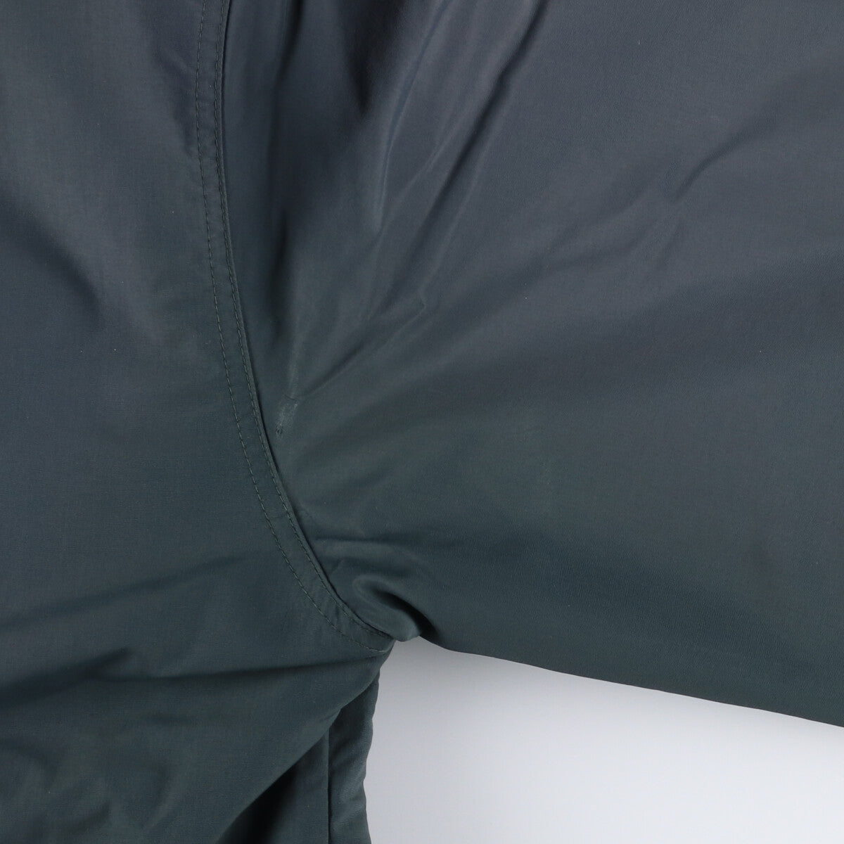 - Back, left armpit and right armhole are rubbed. Stain on both sleeve ends. Ribbed hem is stretched.