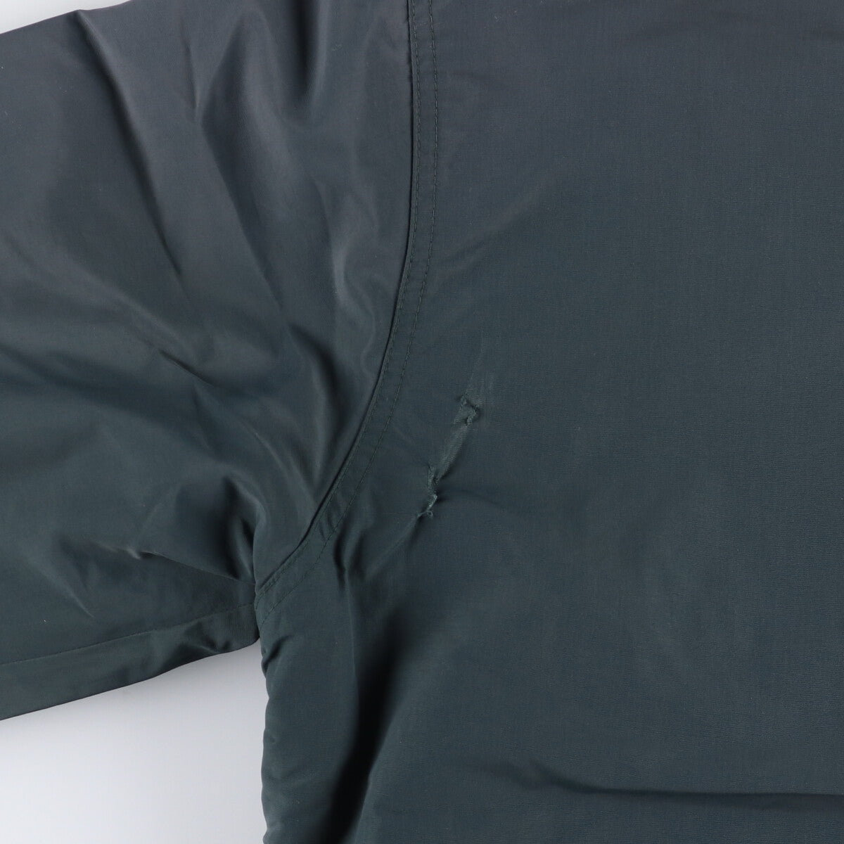 -Inner, stain on both arms and sleeve ends, repair marks on right arm, stain on right armpit, peel and stain on left armpit