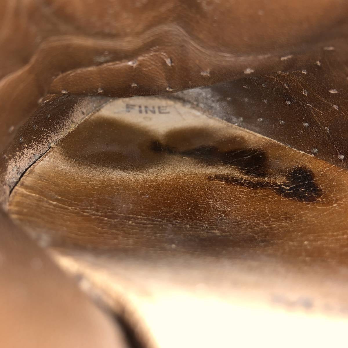 - Left foot, rubbing around the opening, dent at the back opening