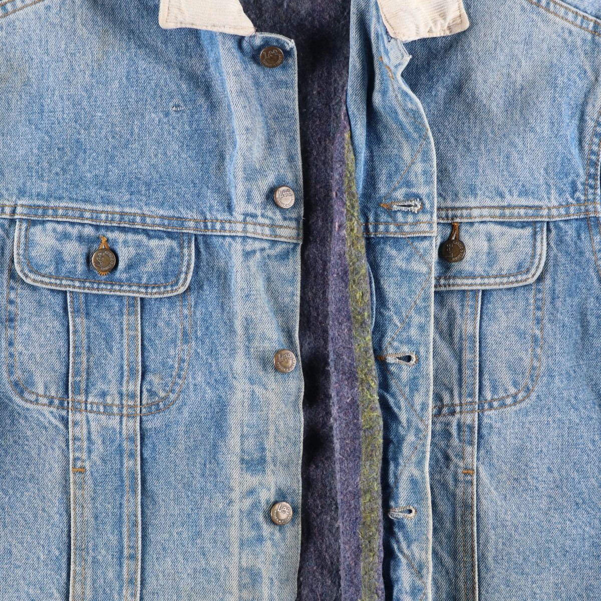 -Stain and surface fading on the collar, rubbing on the left and right sleeve ends, repair marks on the left hem button