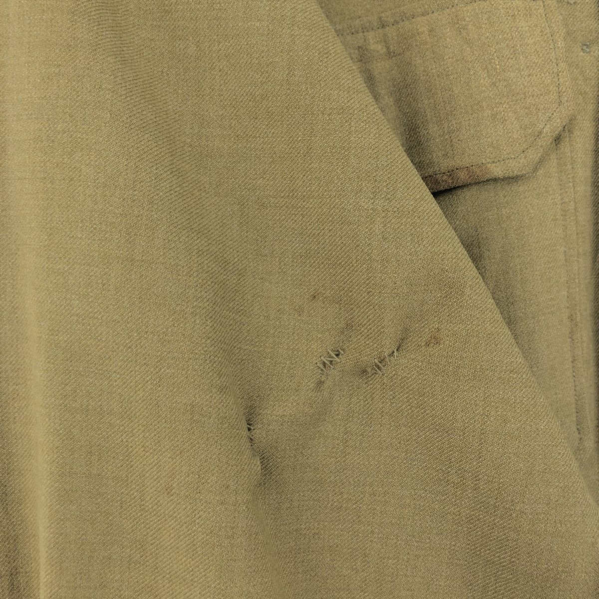 - Stain on right chest flap and right sleeve