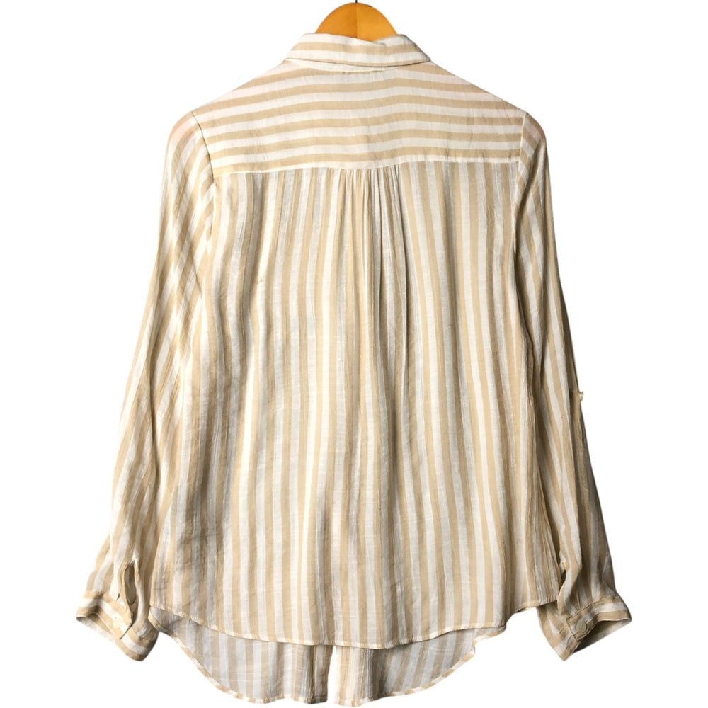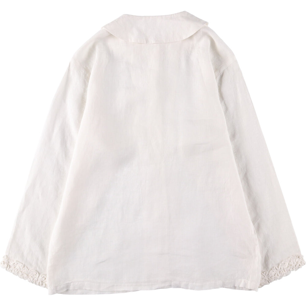 Long-sleeved blouse, women's size S cotton green type yellow green Vintage Second Hand