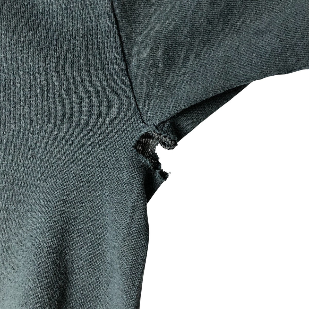 -Tears on the front, both sides and near the right hem