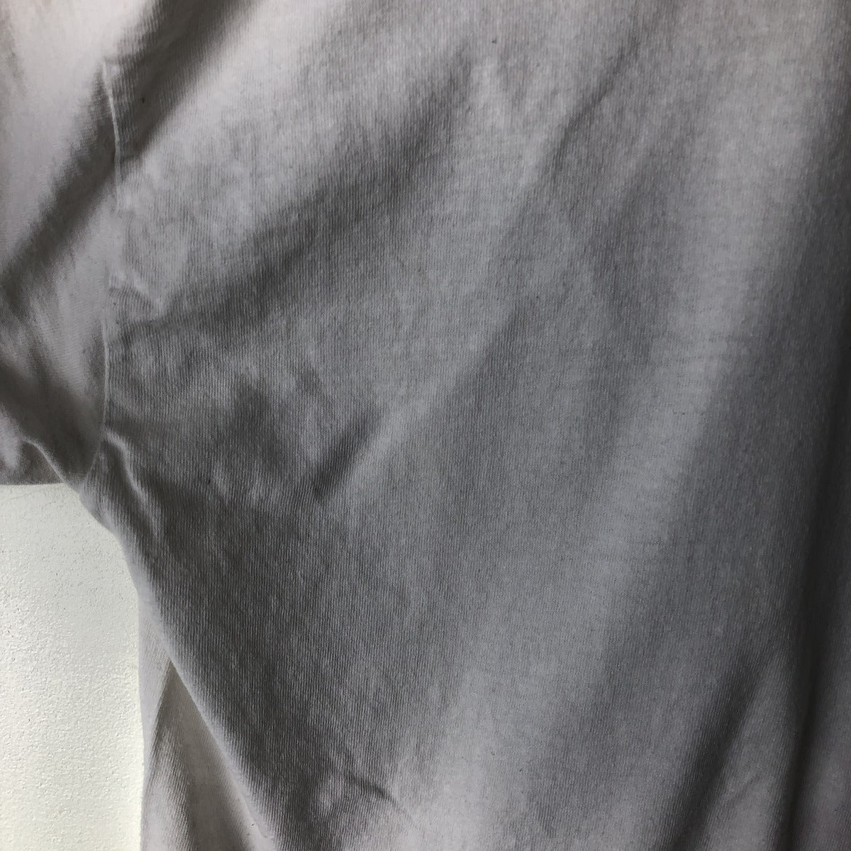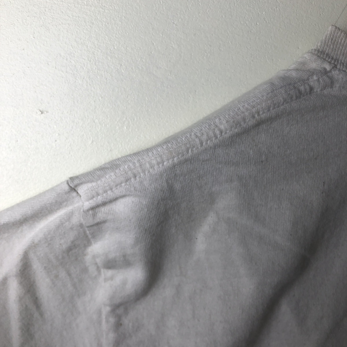- Repair marks on front and neckline. Stains on left and right necklines and left chest.