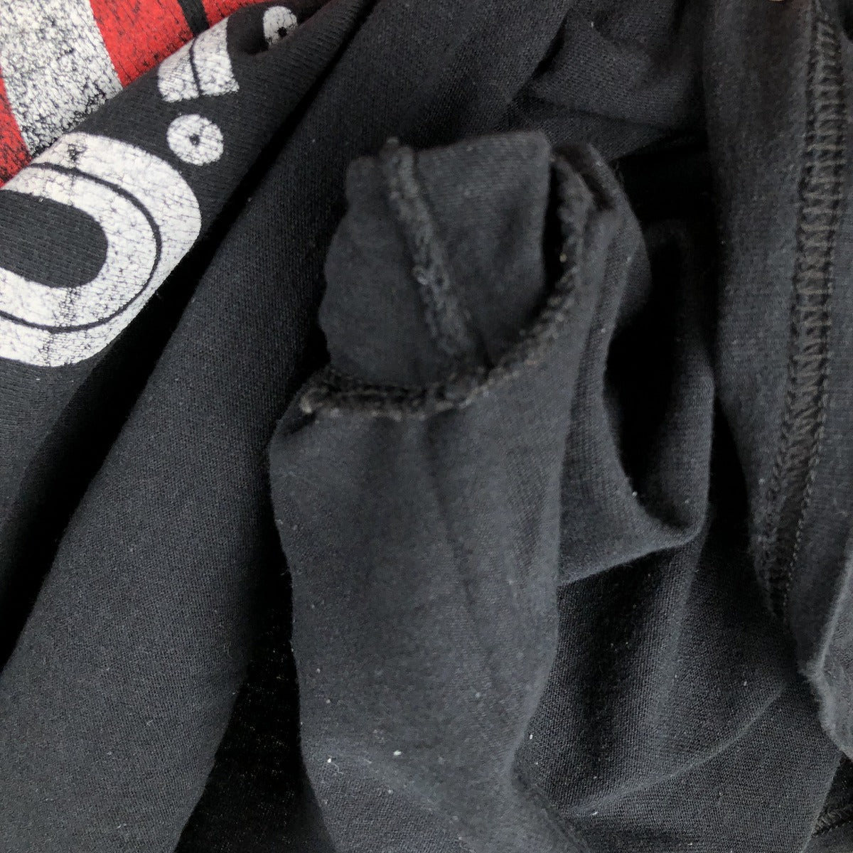 - Antiperspirant residue on front and both armholes (inner)