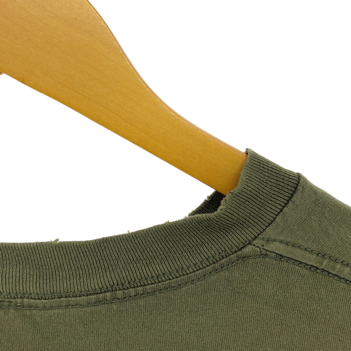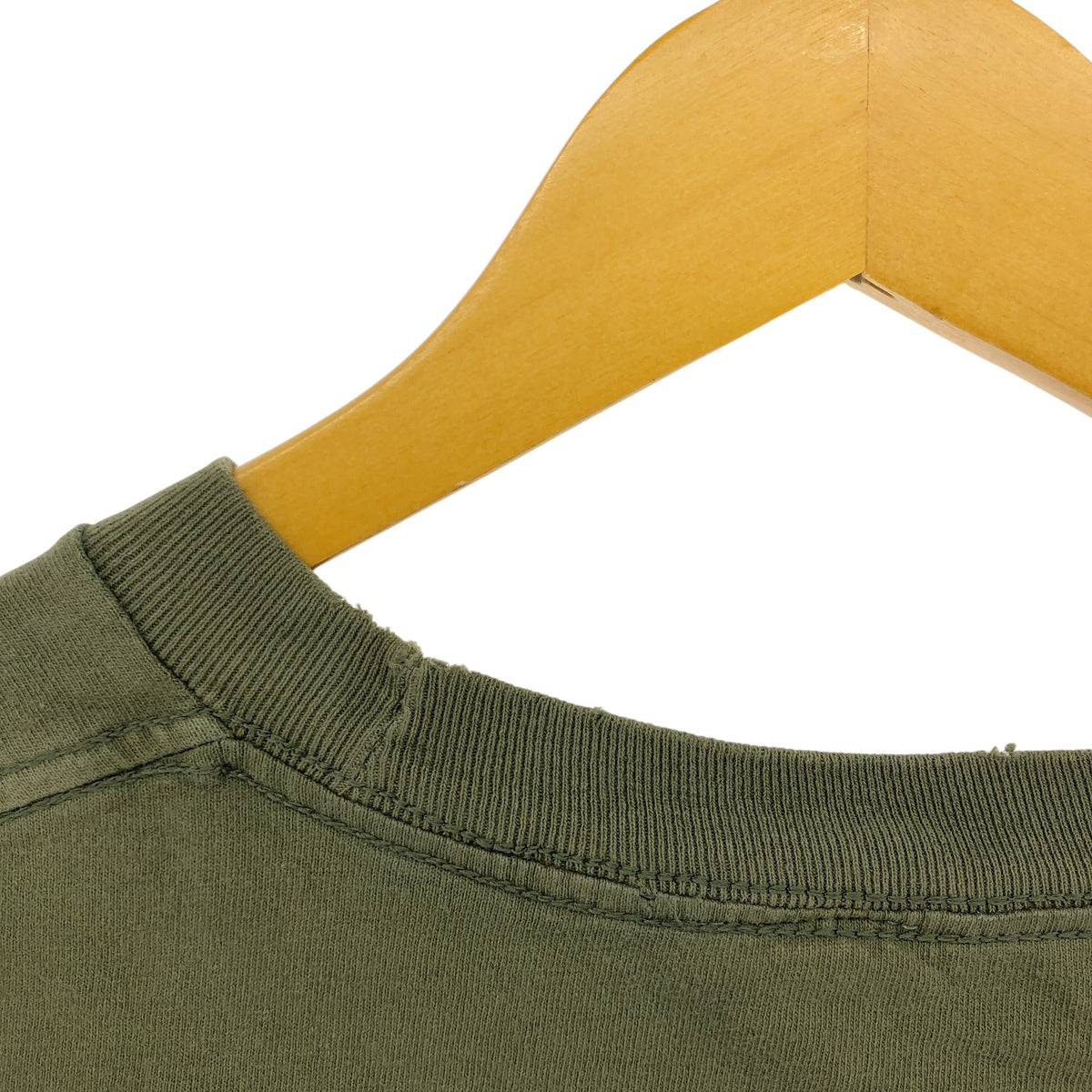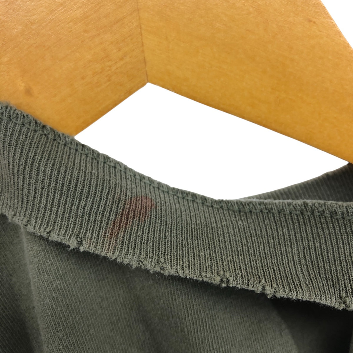 Stain on front and under right neckline