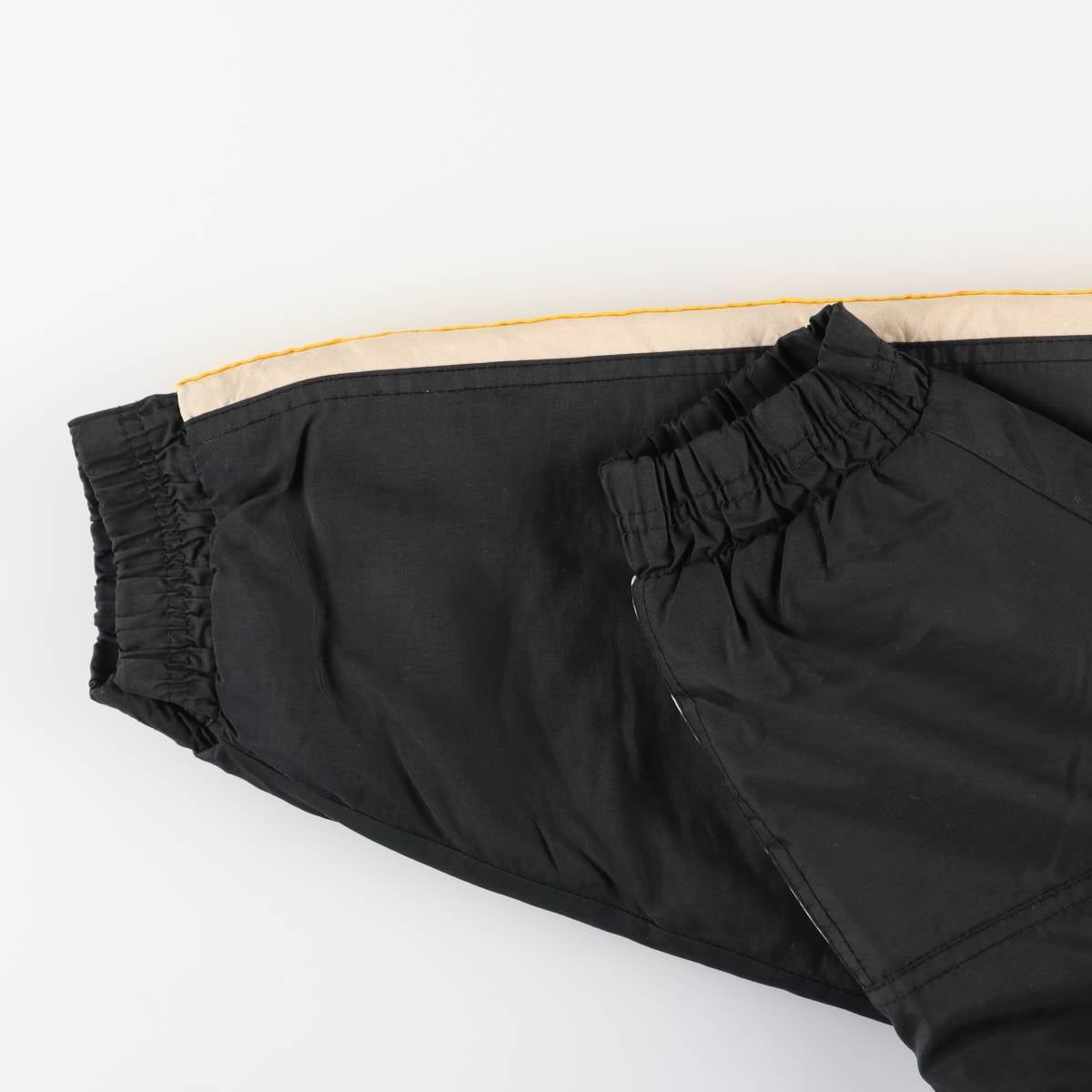 -Rear: Ribbed cuffs on both sleeves, stains on both back and hem, repair marks on both waist.