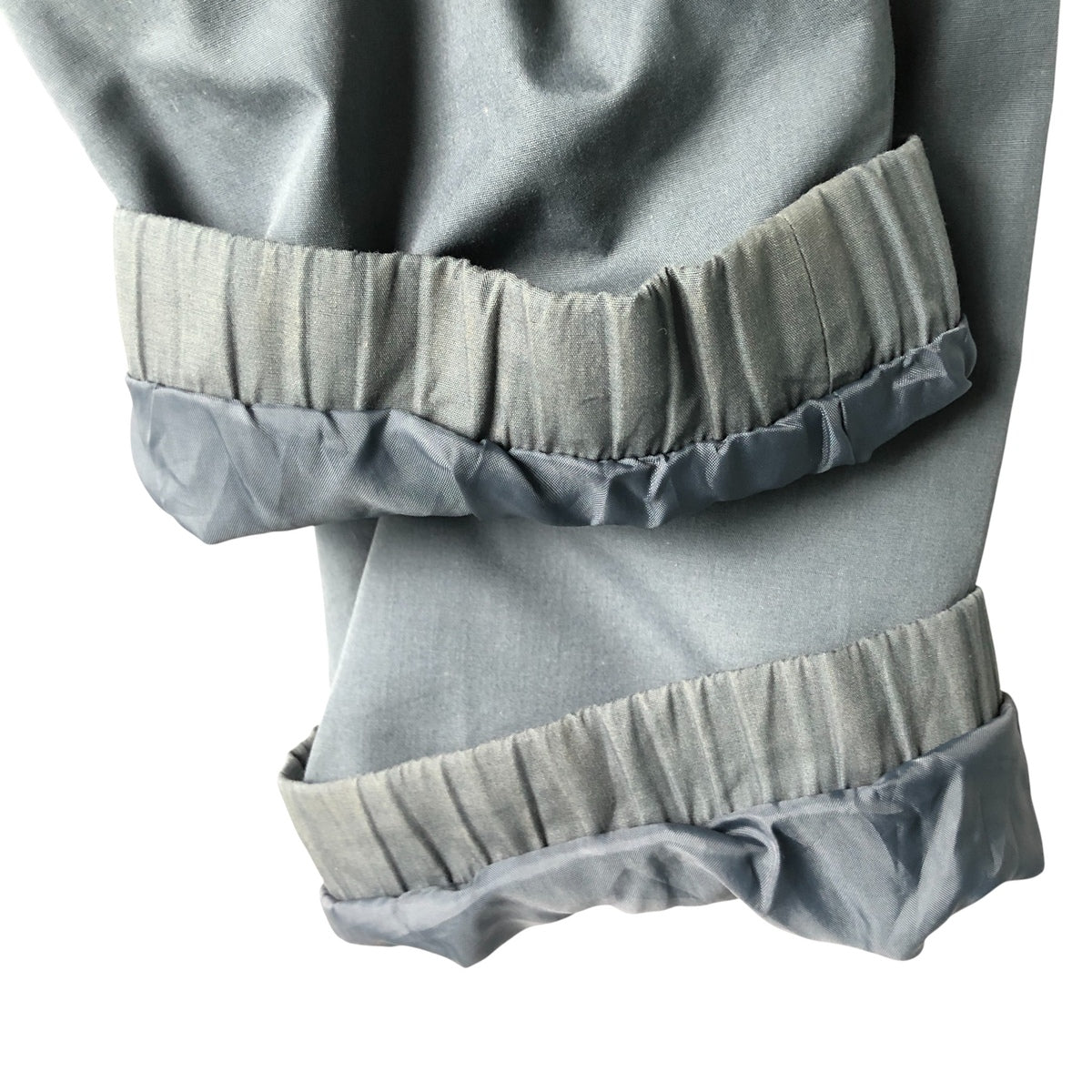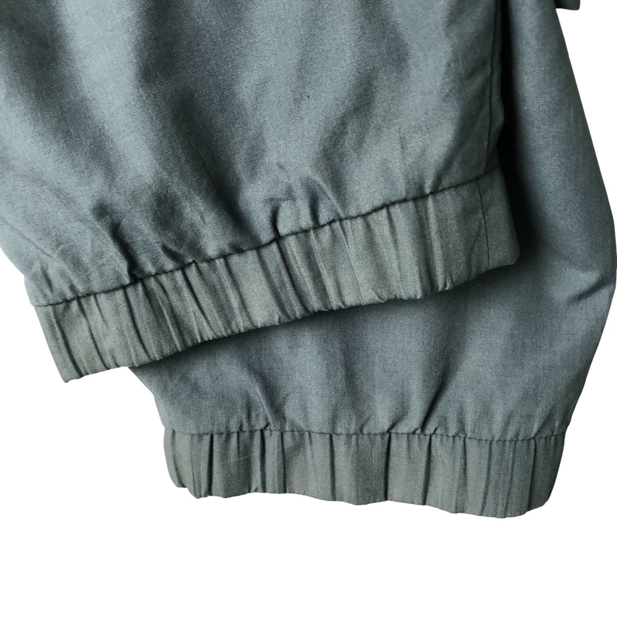-Ribbed slacks on front, back and both sleeve ends