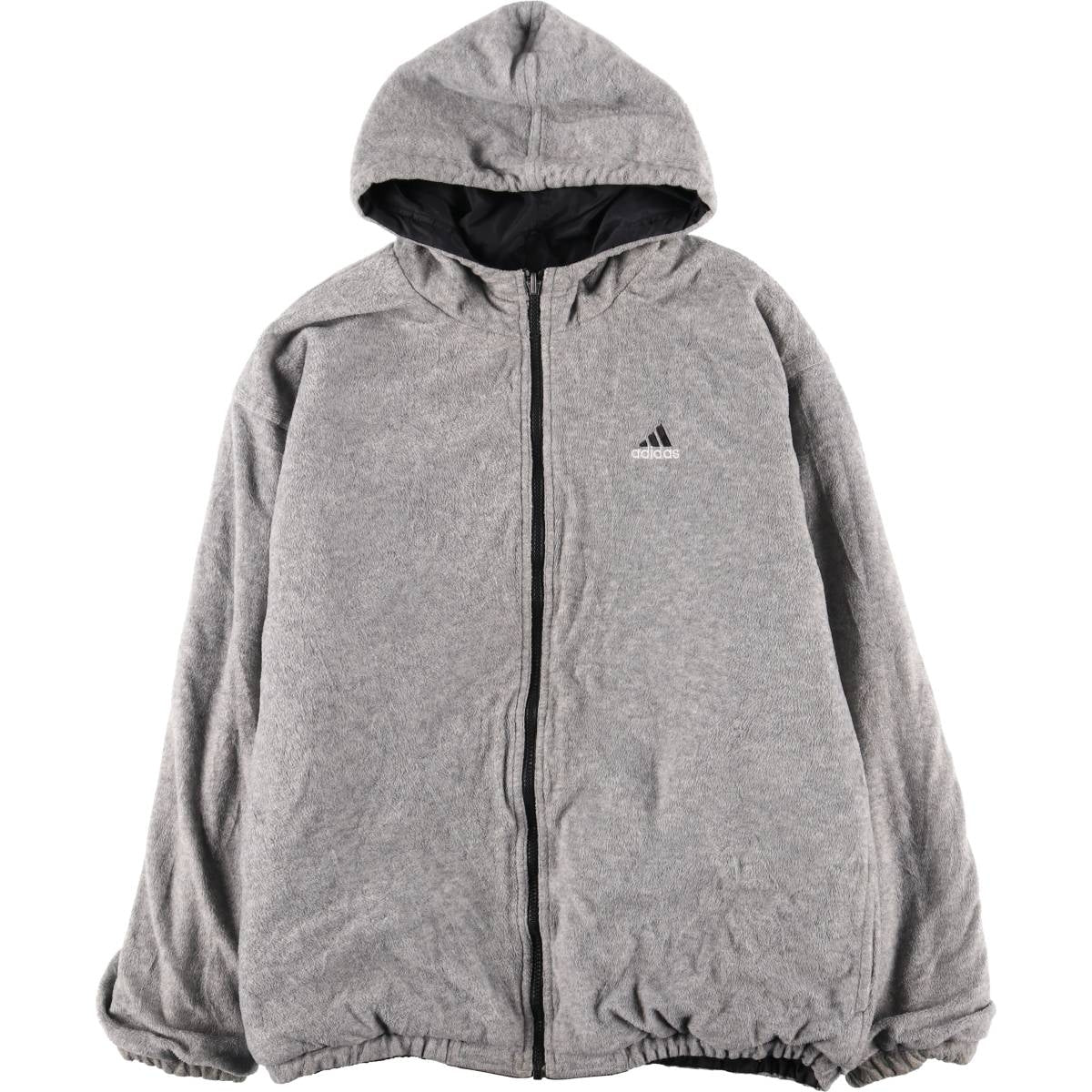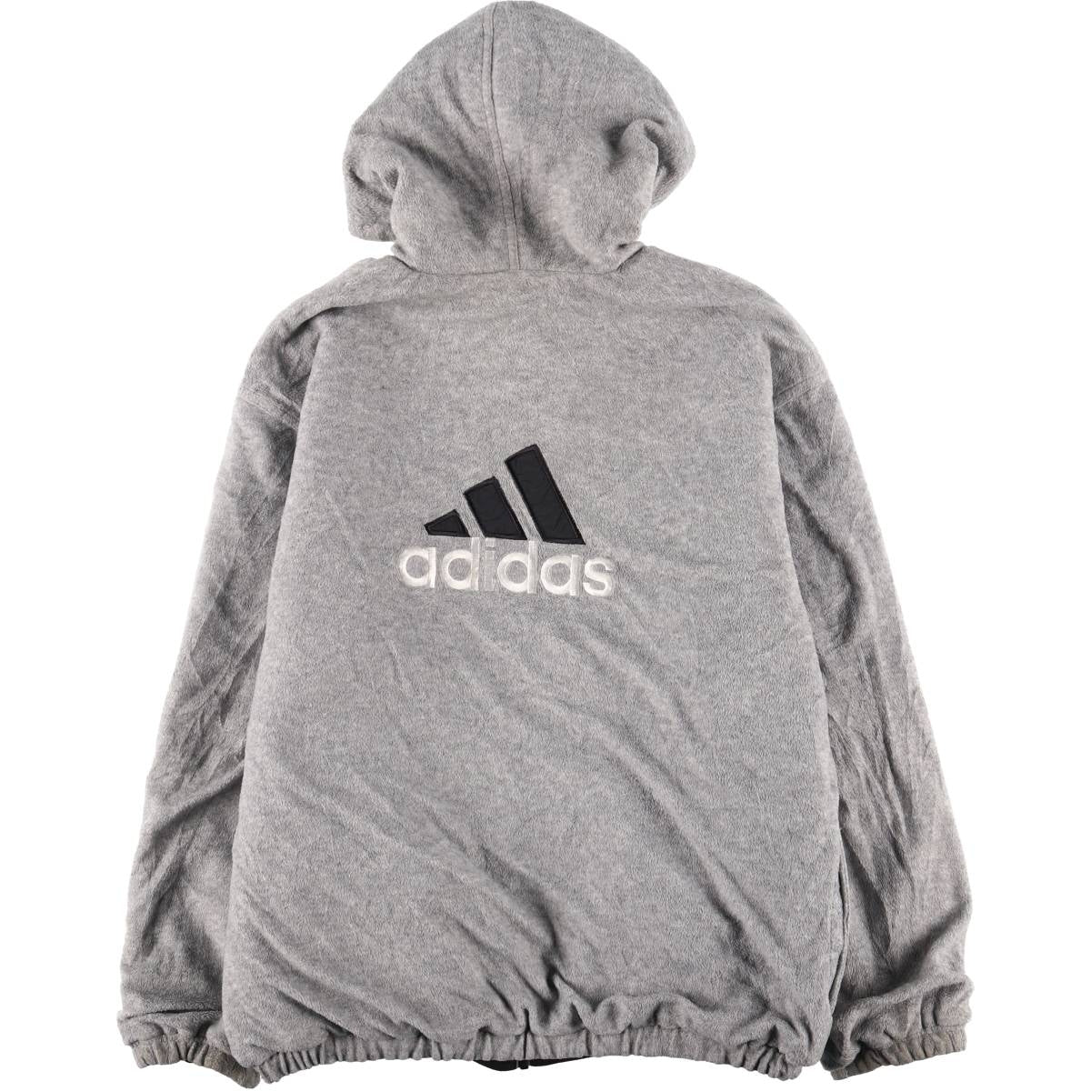 90s-00'S adidas reversible back logo padded hoodie/puffer jacket, men's size M Nylon black type Vintage Second Hand