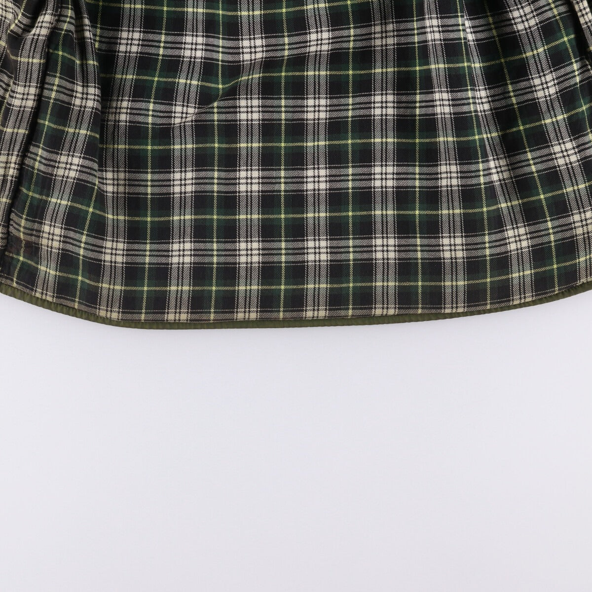-Stain inside the front and left abdominal pocket. Scratches on the back of the right abdominal pocket. Surface peeling of the patch near the back pocket of the left chest placket. Repair marks on the back of the hem placket.