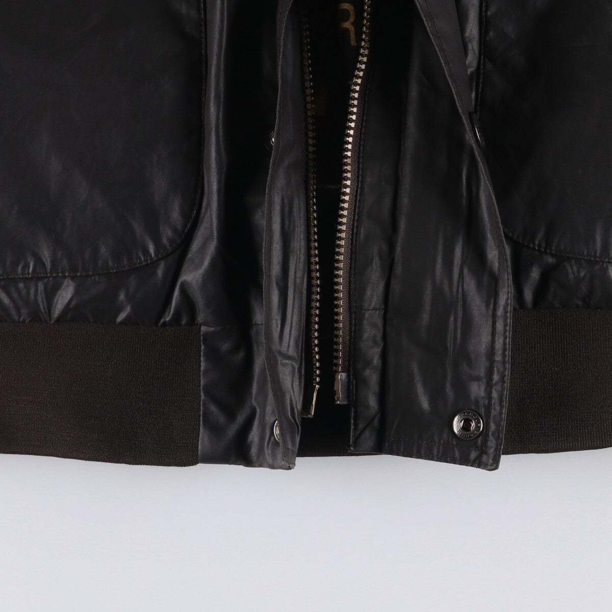 -Stain and repair marks on the inside right sleeve. Thread pulls inside the left pocket.