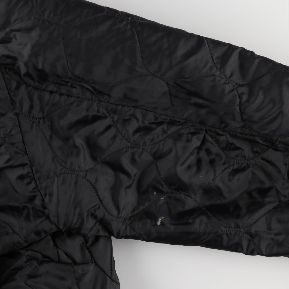 -Stain on the inside front, liner side, right chest and left hem. Rubbing on both sides of the chest. Pulled thread on the left hem.